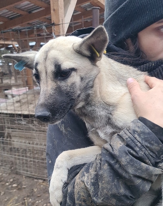 Hündin, kastriert geb. ca. 2021 Größe: ca. 45cm viel zu dünn (12/2022)