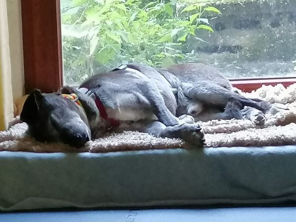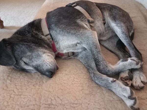 Odie ist richtig angekommen. Er kennt die Tagesabläufe, weiß wann Action angesagt ist und wann man entspannt pennen kann, weil garantiert nichts passiert.