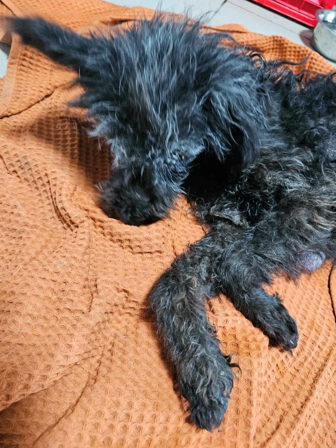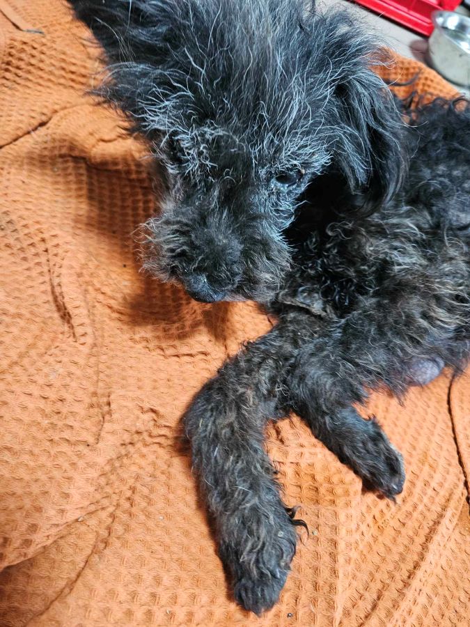 ÖMMY wurde von unserer lieben Tierschützerin allein und völlig entkräftet im Wald in Rumänien gefunden, vermutlich einfach zum Sterben ausgesetzt. Ihr Zustand ist erschütternd: ausgemergelt, stark erschöpft, hat Tumore und Problemen an den Augen. Sie war vermutlich über längere Zeit ohne Wasser und Nahrung, ihre Kräfte fast am Ende.