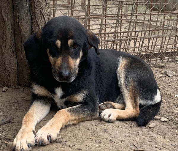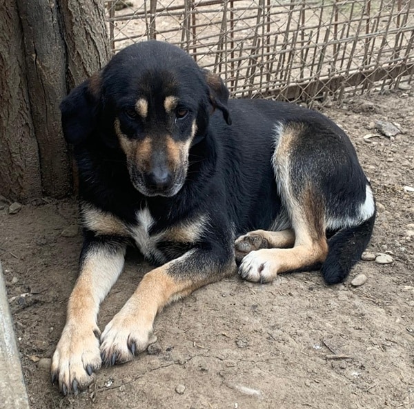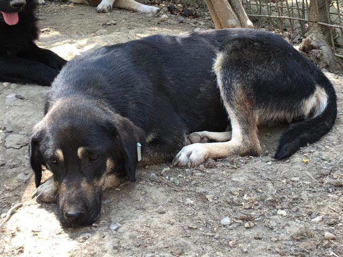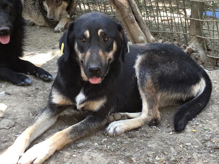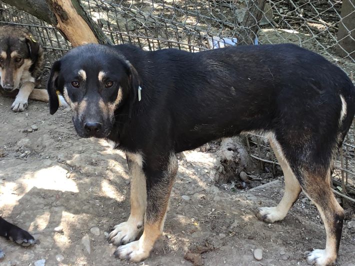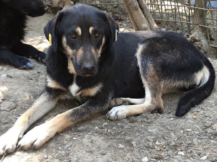 Dieser junge schwarze Rüde mit dem tollen braunen Abzeichen hat uns anfangs aus sicherer Entfernung beobachtet, bevor er sich entspannt niederließ und nach kurzer Überlegung die Streicheleinheiten mehr und mehr zuließ. Ein ganz feines, vom Wesen her zartes Kerlchen, das definitiv Potential für mehr hätte.
