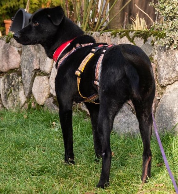 Sie geht gut an der Leine, wobei sie hin und wieder vor Freude der Hafer sticht und sie losrennen mag. Das wird sich sicher mit der Zeit geben.