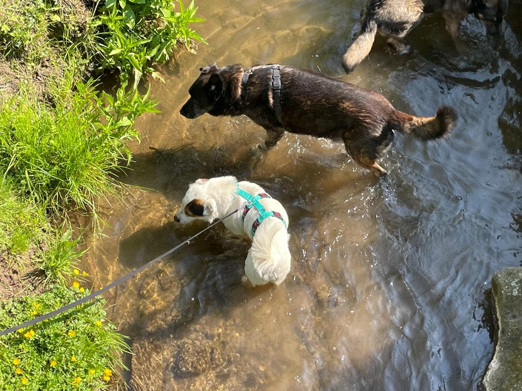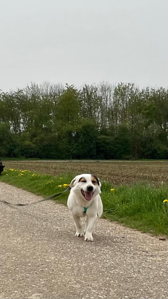Ich liebe lange Spaziergänge, meine Muskulatur muss natürlich noch weiter zunehmen, aber das passiert, wie von allein, beim Spazierengehen. Ich fahre super im Auto mit, laufe erste Sahne an der Leine und bin natürlich stubenrein.
