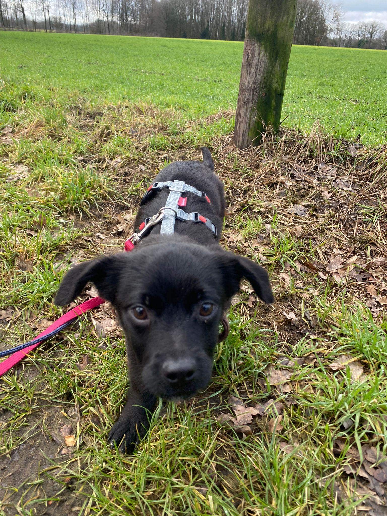 Auch die Spaziergänge meistert er sehr gut. Er ist an allem interessiert aber immer etwas vorsichtig dabei.