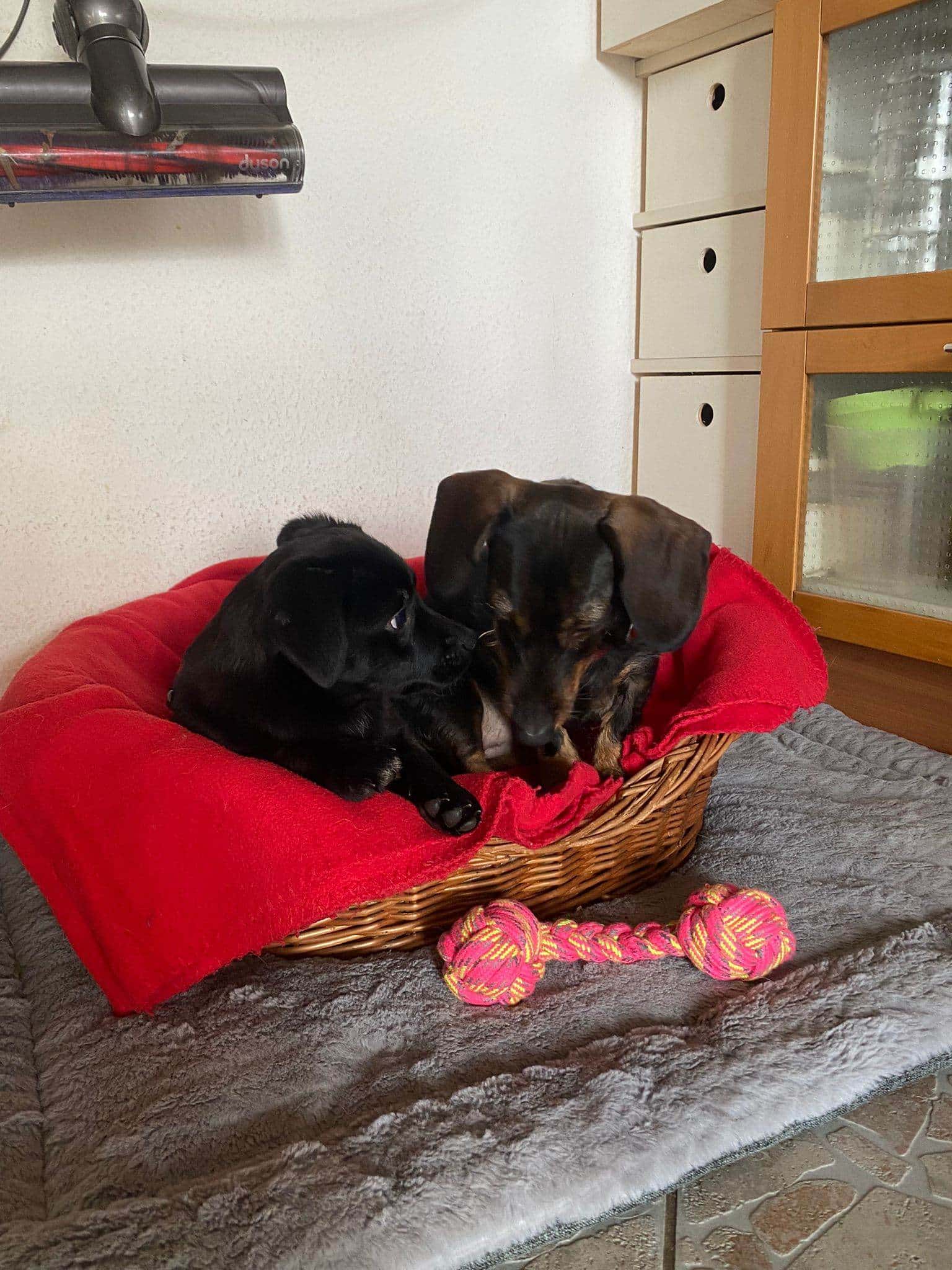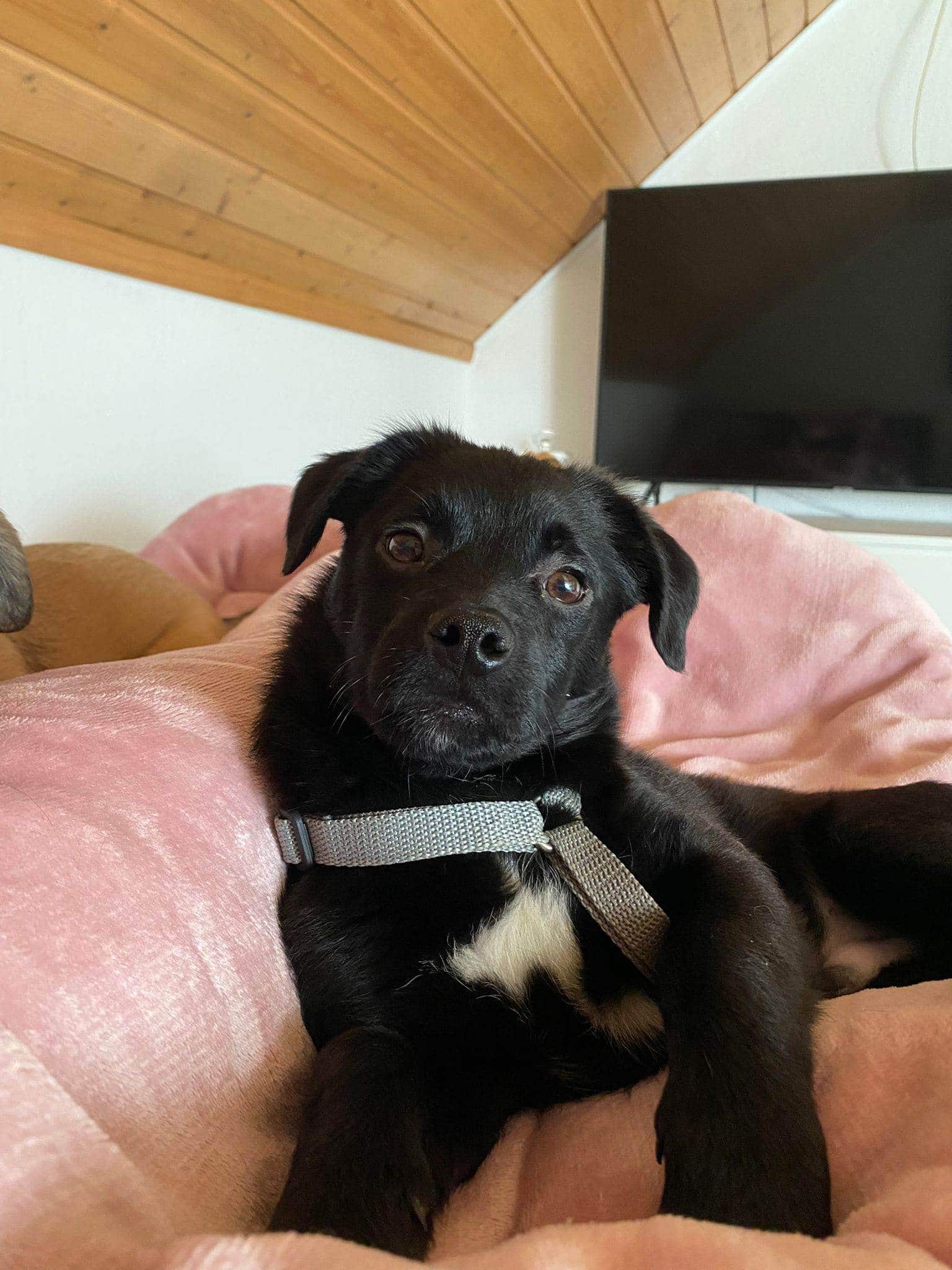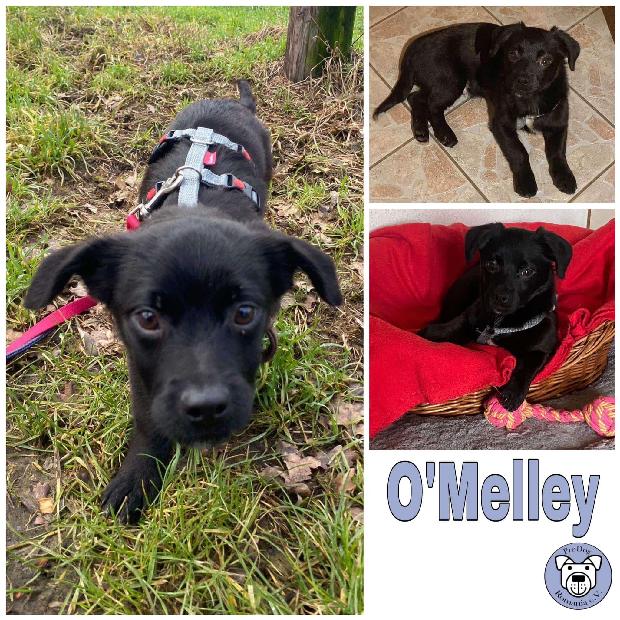 O’Melley schläft nachts schon durch. An der Stubenreinheit muss weiter geübt werden. Das Alleinsein bereitet ihm noch Angst, daran muss er langsam gewöhnt werden.