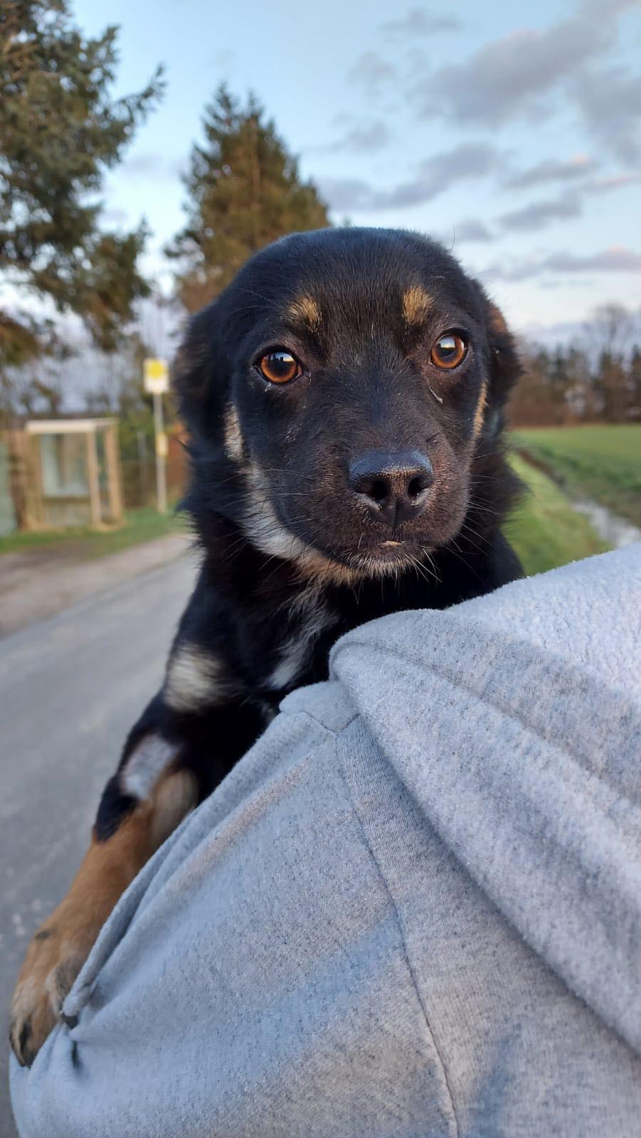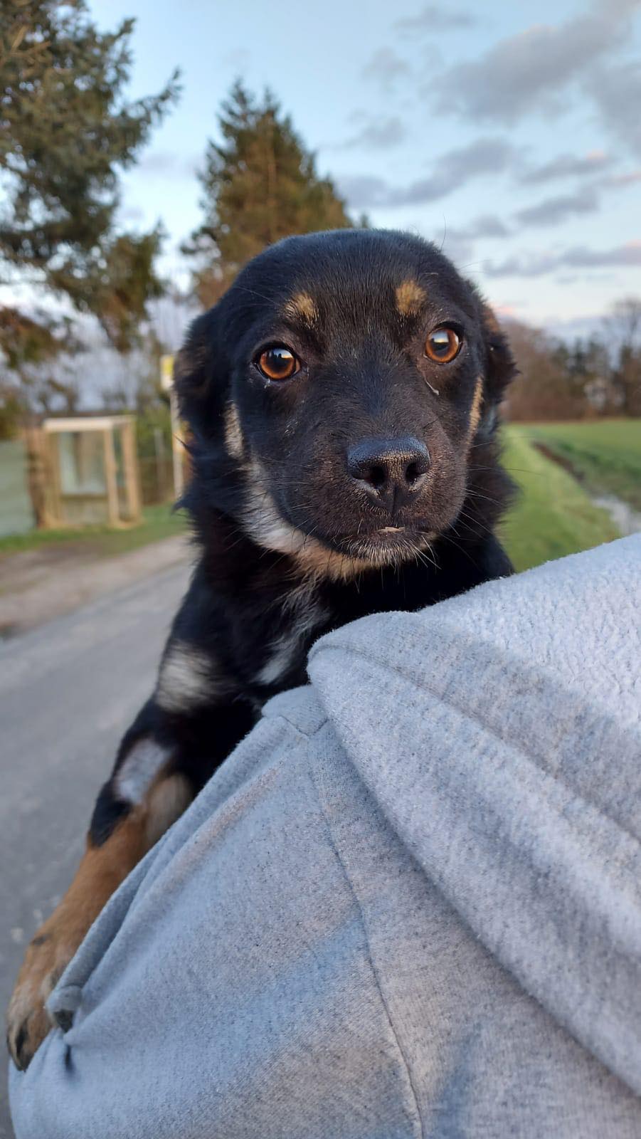 Noch vorsichtig aber sehr freundlich und neugierig…taut fix auf . Ein kleiner Rotti in der Optik auf kurzen Beinchen möchte die Welt erobern. Er geht schon ganz gut an der Leine, ansonsten muss er natürlich noch das ganze Hunde ABC lernen.