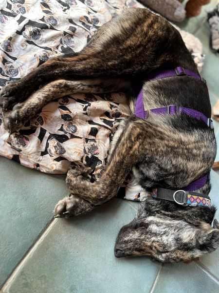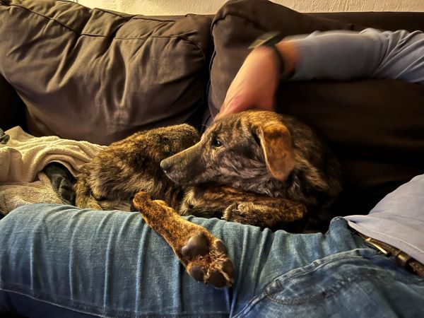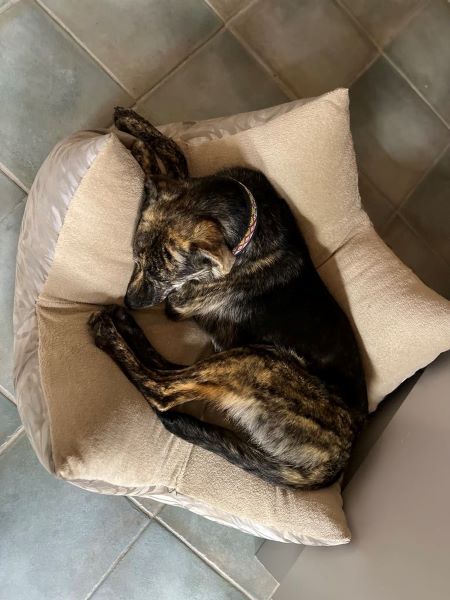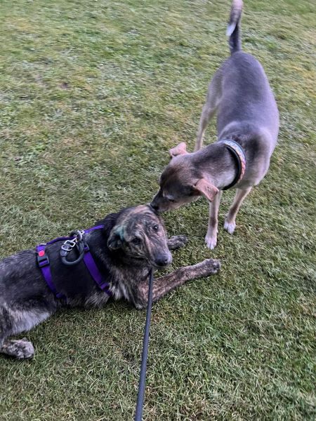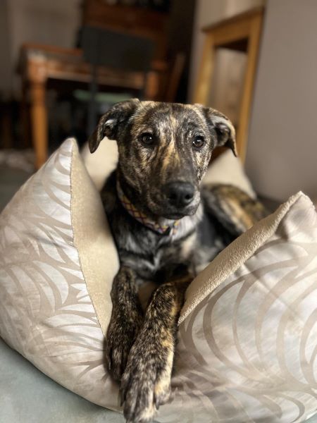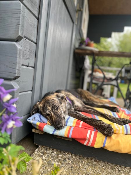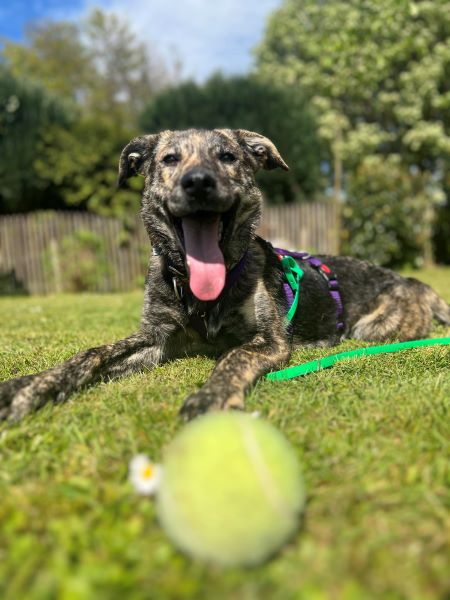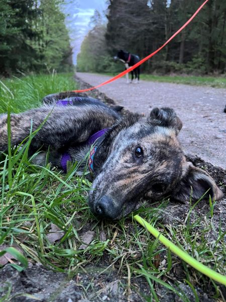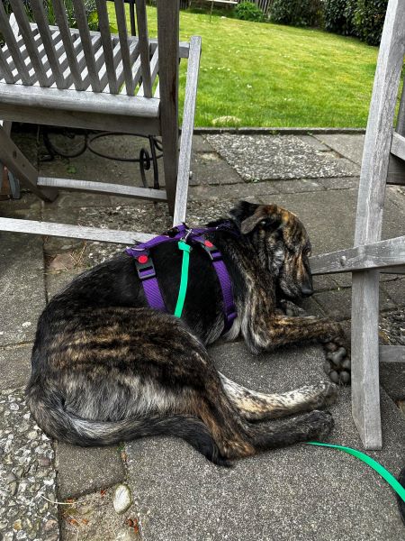 Kinder in ihrer neuen Familie sollten zwingend mindestens das Grundschulalter erreicht haben, da Ontari manchmal auch freudig wild ist. Aktuell ist sie ca. 48 cm hoch und wird vermutlich noch ein bisschen wachsen. Ihre wunderschöne gestromte Fellzeichnung macht sie zu unserem ganz besonderen Marmorkuchenhund