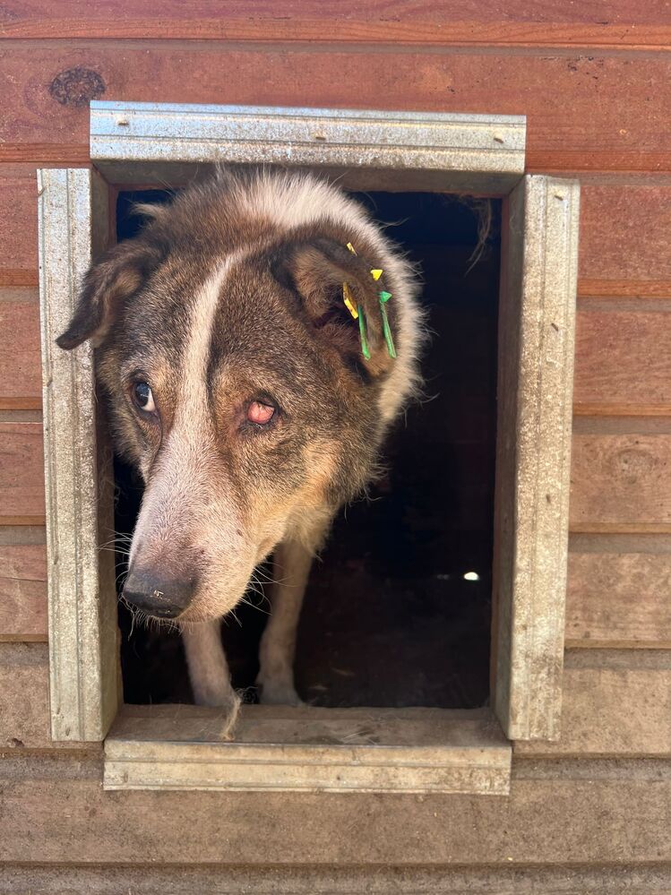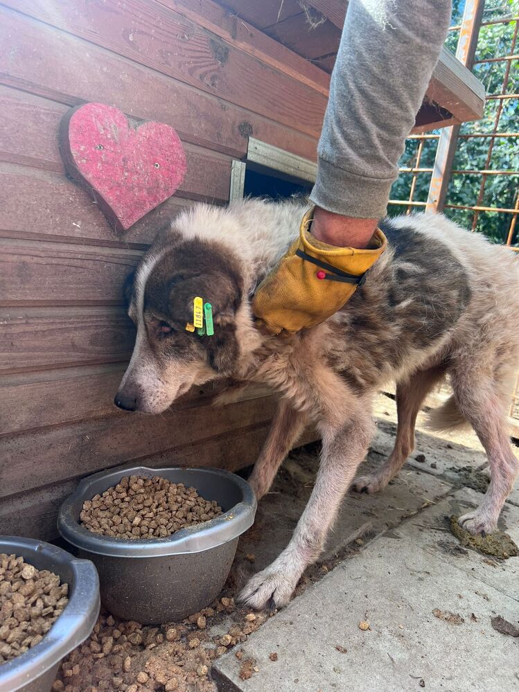 Auch der nette OPA KALEUN ist mit seinen 12 Jahren im Shelter Bucov gelandet. Er hat nur noch ein Auge, er sieht nicht mehr viel. Er orientiert sich primär über seine Nase.