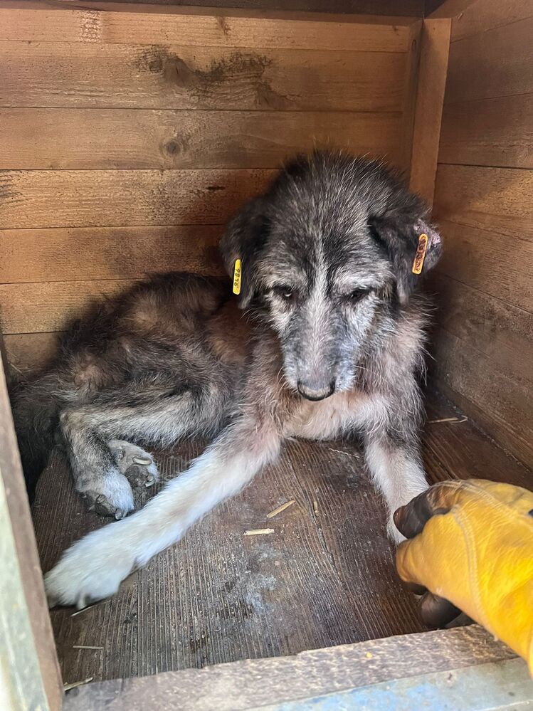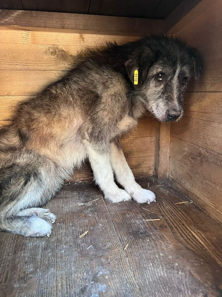 Mitten in Bucov haben wir den Notfall OPA STRUSEL kennengelernt, der hier bereits seit März/April 2023 ausharren muss. Er ist freundlich, verträglich und nimmt Leckerchen aus der Hand. Beim Versuch ihn zu streicheln, weicht er aus. In einer anderen Umgebung würde er sicherlich schnell zutraulicher werden.