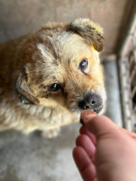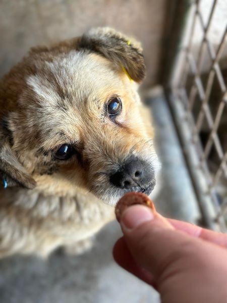 Wie kommt dieser Opi, der eindeutig enger zusammen mit Menschen gelebt hat, in so einem höheren Alter ins Shelter. Noch sitzt er im VetKennel, weil frisch geimpft und kastriert um nun auf die Kennels verteilt zu werden. D.h. Gruppenbildung – ohne menschliche Aufsicht. Die Sorge, das dieser nette, zutrauliche Opi dabei unter die Räder kommt, ist groß. Ausreise wäre mit dem nächsten Trapo möglich. Ob er bis dahin gesehen wird? Ob er bis dahin noch lebt? Wir drücken ihm alle Pfoten & Daumen. Er wirkt auch verträglich, aber der Mensch und ein ruhiger Fleck dürften wichtiger sein.