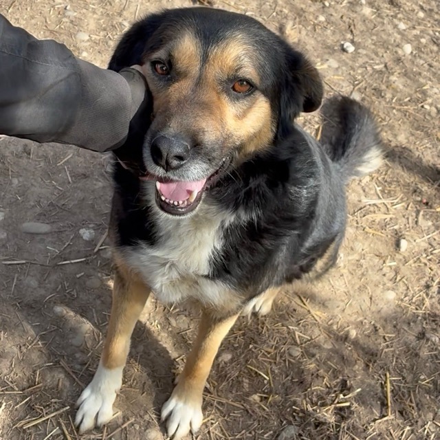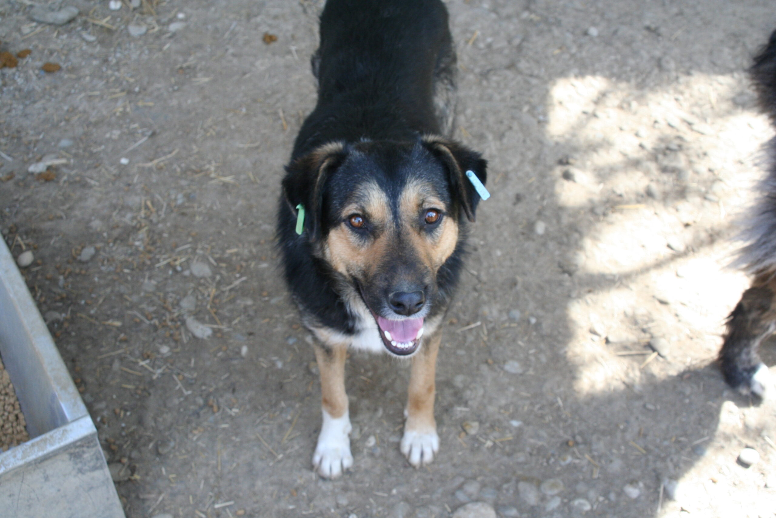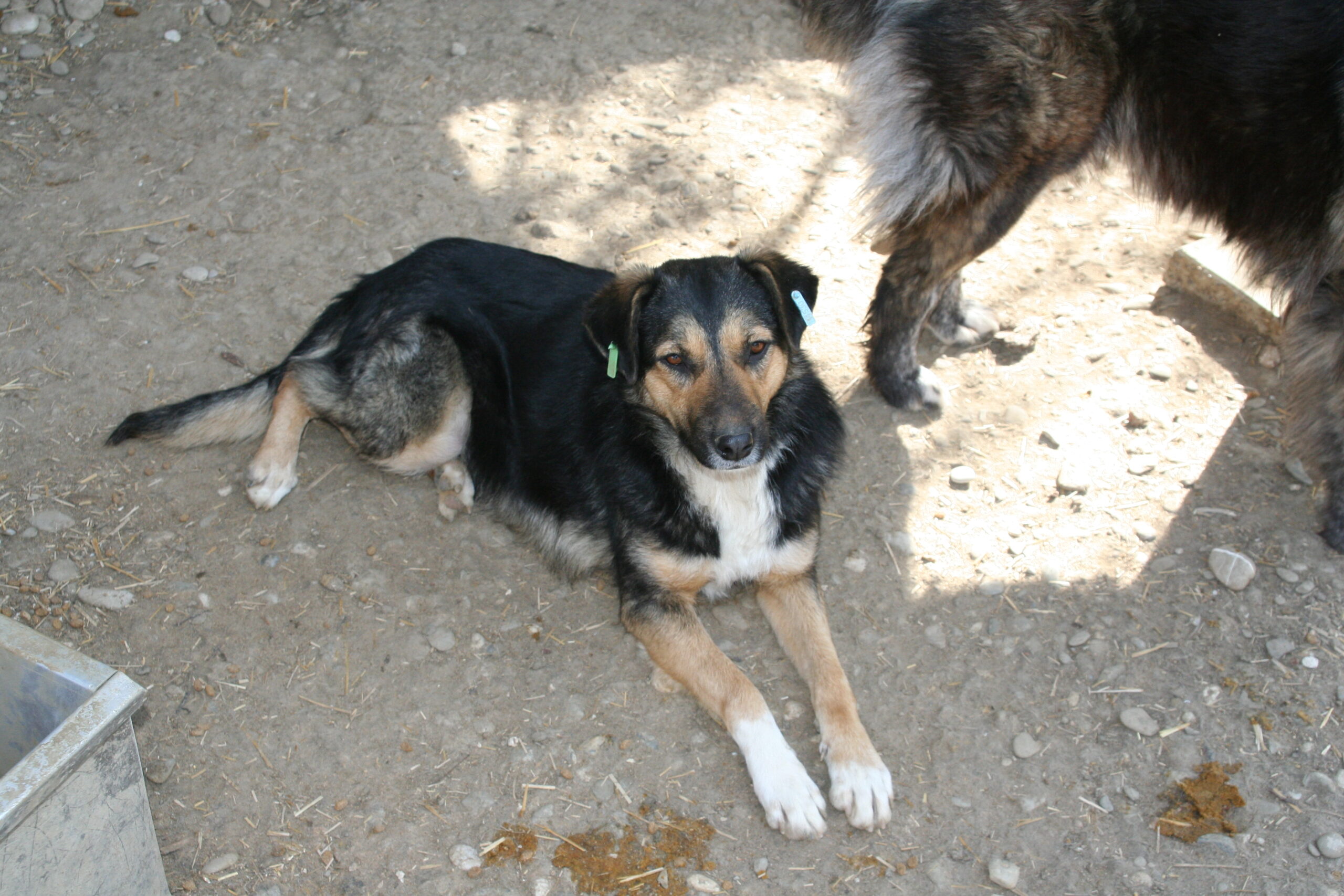 ORAYA begegnete uns offen und nahm unsere Leckerlie gerne aus der Hand. Um sich anfassen zu lassen, fehlte noch ein kleiner Schritt. Sie sitzt mit einem großen Rüden zusammen, an welchem sie sich orientiert.
