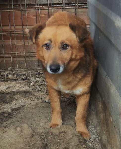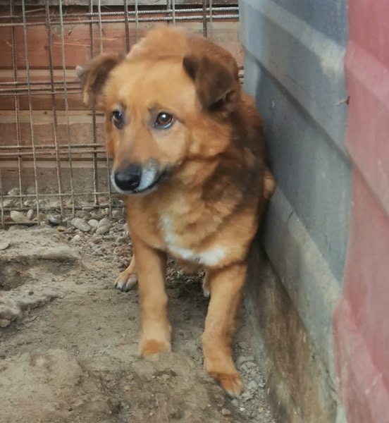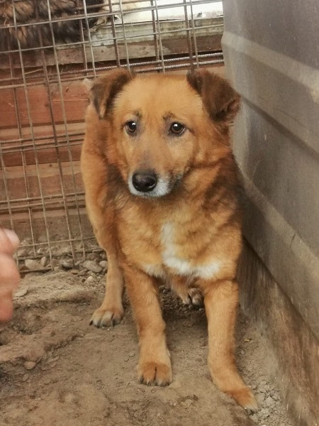 Der kompakte Hundemann in rotbrauner Jacke zeigte sich an seinem Besuch durchaus interessiert und neugierig. Die angebotenen Leckerlies nahm er vom Boden auf, mit etwas Zeit und Geduld wäre der Rüde sicherlich auch bald auch anfassbar.