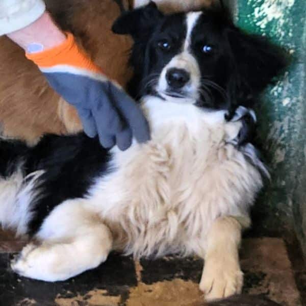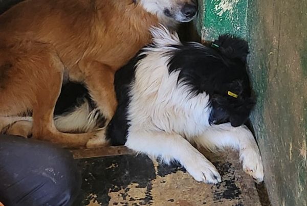 Der wunderschöne OSCO hatte sich im hintersten Eck des Kennels verkrochen und wäre am liebsten unsichtbar gewesen. Zu allem Übel hatte es sich auch noch eine Hündin auf ihm bequem gemacht, sodass während unserer Anwesenheit der Bewegungsradius maximal eingeschränkt war. Wir konnten ihn dann vorsichtig streicheln, wobei man jedoch merkte, dass er die seltenen Berührungen zwar über sich ergehen ließ, es aber nicht genießen konnte. Die angebotenen Leckerchen wurden ebenfalls nicht angenommen, war der Hund noch zu beeindruckt von der gruseligen Shelteratmosphäre. Eine sehr berührende Begegnung, sodass wir hoffen, dass der arme OSCO nicht zu lange im Shelter ausharren muss.