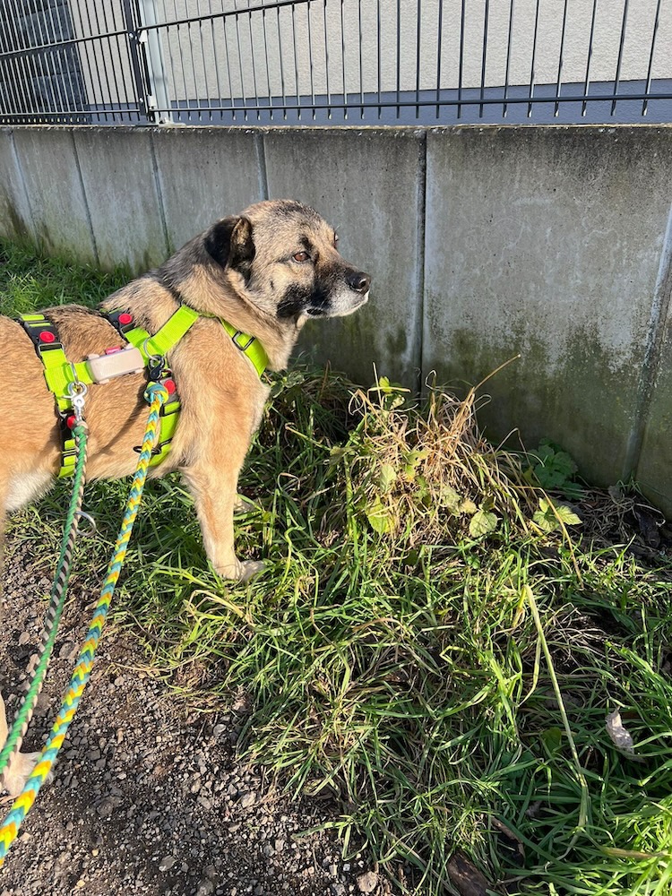Jetzt fehlt ihm nur noch eines: sein eigenes Für-immer-Zuhause. Ich könnte mir für Osco wunderbar ein älteres Paar vorstellen, das den Alltag genauso entspannt angeht wie er. Aber auch jüngere Menschen sind herzlich willkommen – Hauptsache, der Alltag ist nicht zu hektisch. Ein kleiner Bonus: Osco bleibt schon mal ein Weilchen alleine (mit meinen beiden Rüden), aber sobald es zum Spaziergang geht, steht er freudestrahlend an erster Stelle. Sicherlich hätte Osco auch noch Spaß dran die Hundeschule zu besuchen, damit auch sein Kopf noch etwas zu tun hat. Außerdem ist er stubenrein, läuft gut an der Leine und schläft die Nächte durch.