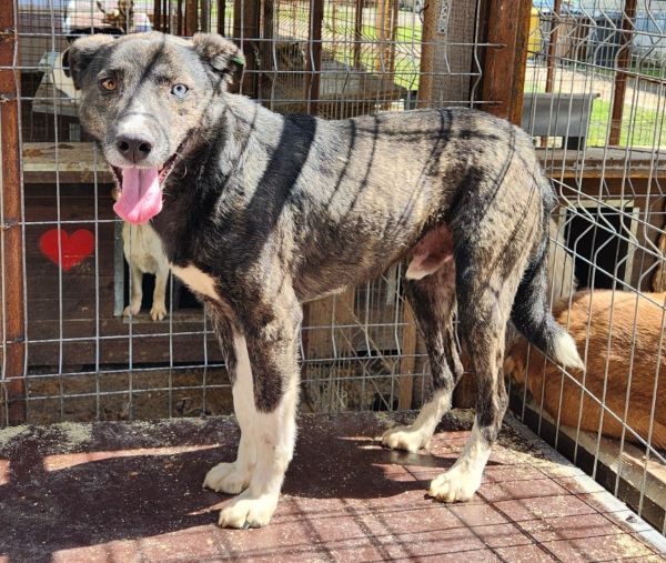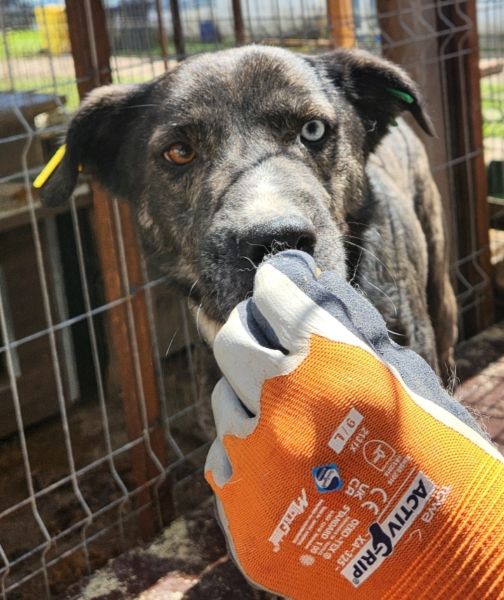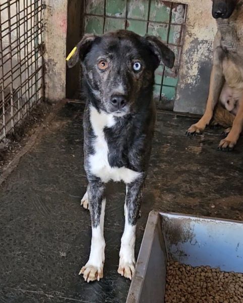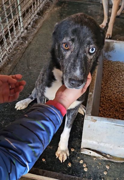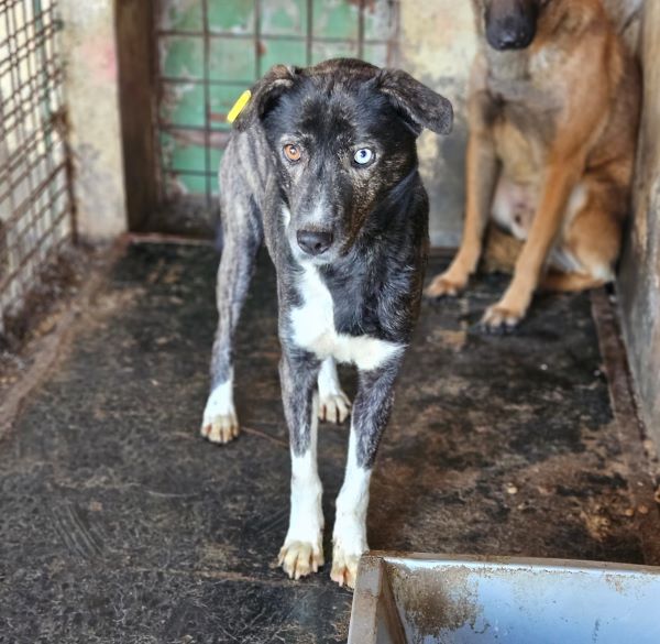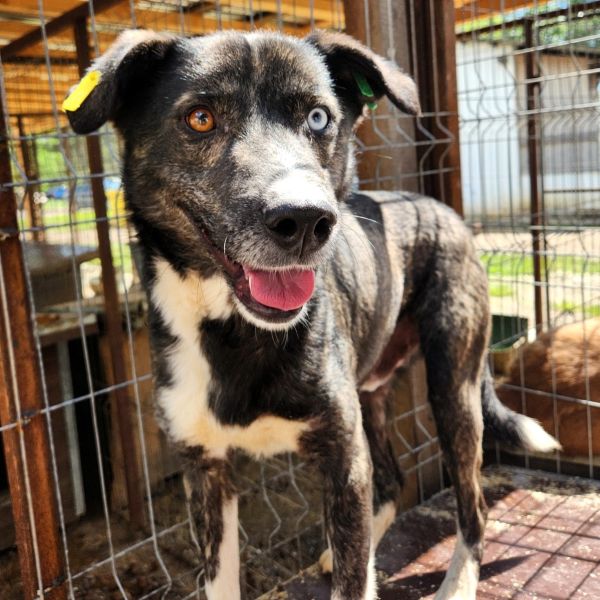 Dieser hübsche Rüde fällt direkt durch seine zweifarbigen Augen auf. OTHIS ist noch ganz neu in Bucov. Trotz dieser neuen Situation kam OTHIS neugierig auf uns zu und wir konnten ihn gut streicheln. Dabei merkt man ihm etwas an, dass er Streicheleinheiten noch nicht kennt. Wir gehen davon aus, dass er in einer anderen Umgebung sicher schnell auftauen würde.