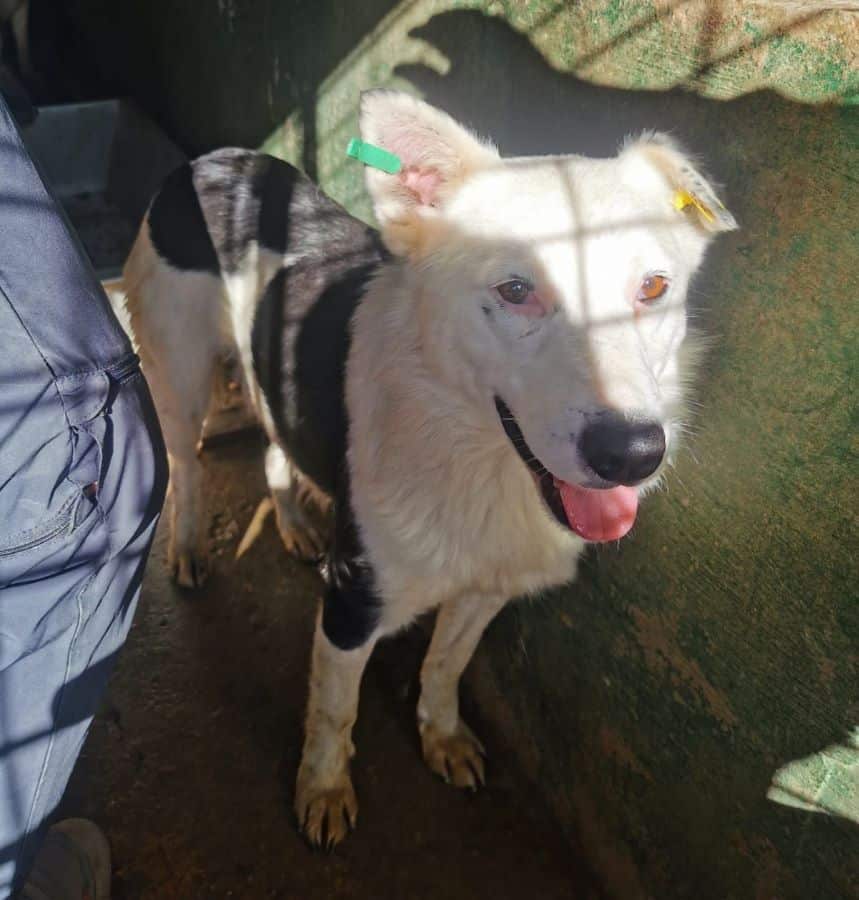 Dieser wunderschöne und menschenbezogene Rüde empfing uns freundlich im Kennel. Er war neugierig, offen und nahm unsere Leckerchen aus der Hand. Wir konnten ihn gut anfassen und streicheln. Dabei wirkte er zeitweise etwas unsicher, was jedoch auch der Situation vor Ort geschuldet sein kann. Unsere Aufmerksamkeit als auch unsere Leckerchen wollte er nur ungern mit den anderen Hunden im Kennel teilen. Deswegen könnten wir uns vorstellen, dass er auch als Einzelhund glücklich sein kann.