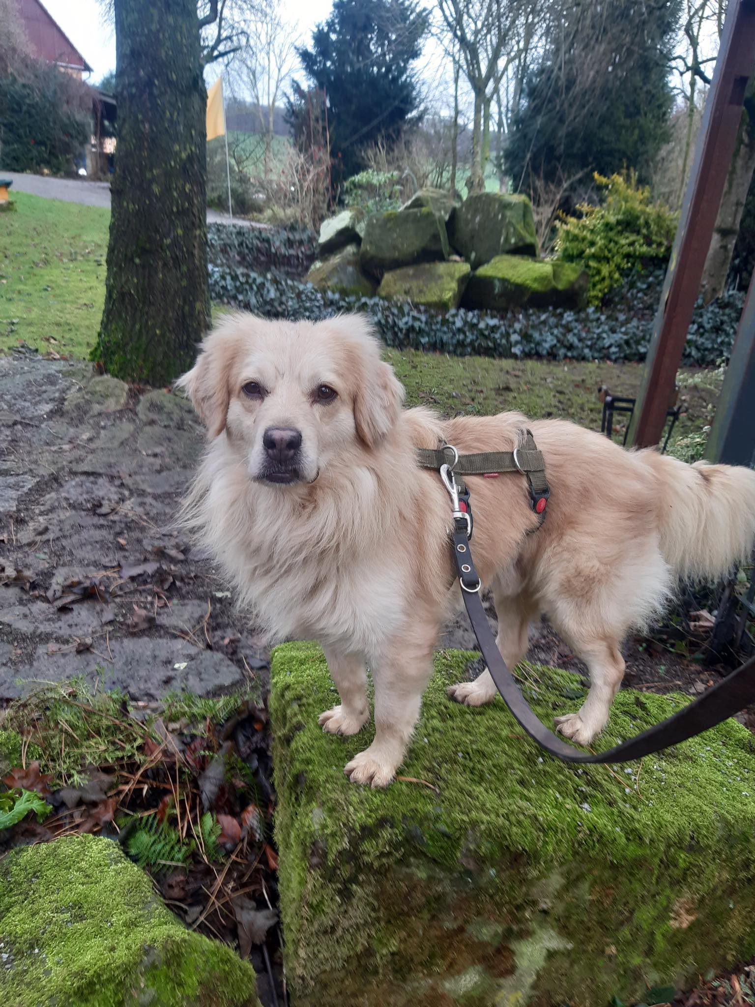 Paddy, ist ein ca. 2014 geborener kleiner Mischling. Welche Rassen in ihm stecken ist schwer zu sagen. Ich vermute auch evtl. etwas Collie oder Spitz oder auch ganz was anderes. Er hat ca. 45 cm Schulterhöhe und wiegt ca. 14 Kilo. Seine genaue Herkunft ist unbekannt. Er ist seit dem Anfang Dezember in Deutschland und war erst auf einer Pflegestelle in Frankfurt, die er wegen einer Erkrankung seines dortigen Pflegefrauchens leider verlassen musste. Mitte Dezember 2020 ist er bei mir eingezogen. Hier zeigte er die ersten 3 Tage starke Verlustangst die sich in permanenter Unruhe darstellte. Ab Tag 4 kam er langsam an und schloss sich mir und meinen 3 eigenen Hunden gut an. Er läuft bereits im Geschirr recht gut an der Leine, es muss aber noch weiter mit ihm gearbeitet werden. Begegnungen mit fremden Menschen und anderen Hunden sind ganz gut machbar, jedoch wohnen wir recht abgeschieden und treffen nur wenig Leute. Hier muss mit Konsequenz Routine erarbeitet werden, damit das auch in dichter besiedelten Gebieten oder in der Stadt funktioniert. Im Auto ist er gut gesichert ein toller Beifahrer, das gefällt ihm glaube ich sogar.