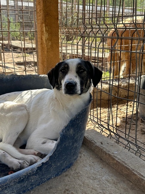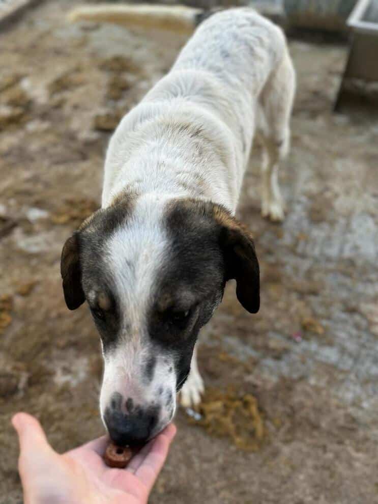 Update 03/24: Pajam ist nach wie vor zutraulich. Er freut sich über Leckerchen und die Abwechselung im Kennel. Mit anderen Hunden ist er verträglich, er lebt in einem gemischten Rudel.