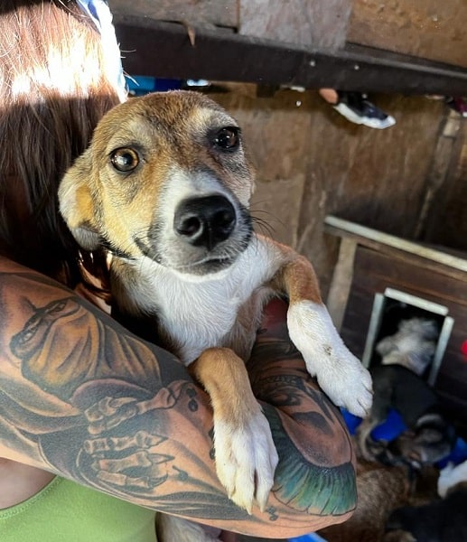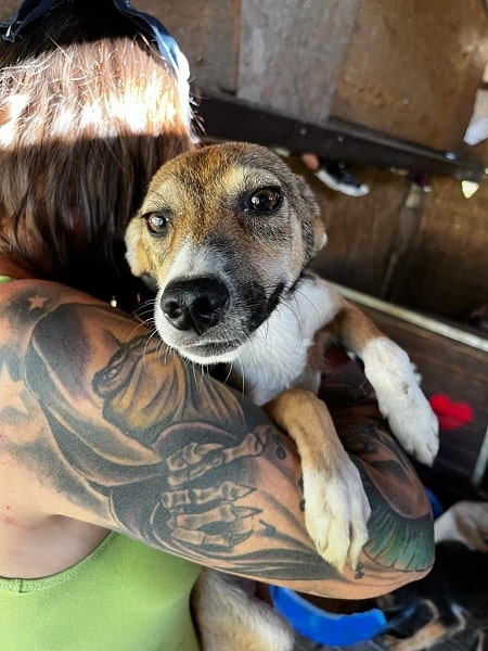 Pakiki zeigte sich neugierig, allerdings merkt man ihm den fehlenden Menschenkontakt leider deutlich an. Anfassen konnten wir ihn leider nicht. Mit den anderen Hunden im Kennel ist er verträglich.