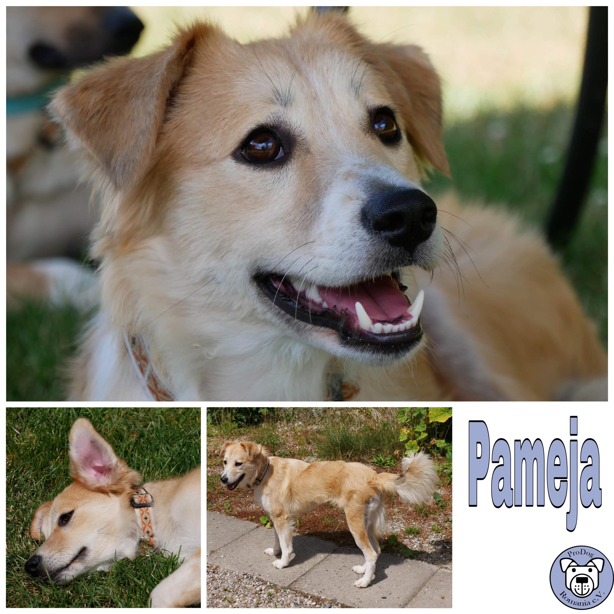 Pameja ist eine freundliche Hündin, die alle Menschen und nette Artgenossen mag. Bedingt durch einen Beinbruch musste sie zunächst hier auf Pflegestelle lange Zeit auf direkten Kontakt zu Artgenossen verzichten, um die Heilung nicht zu gefährden. Das hat sie ganz geduldig und ruhig über sich ergehen lassen. Seit einiger Zeit ist die strenge Isolierung beendet und Pameja blüht zusehends auf. Sie mag ihre PS Geschwister, sie mag Rasen – sie mag mit ihren Freunden auf dem Rasen rangeln. Das Toben müssen wir leider derzeit immer noch unterbinden, aber ein ruhiges mit einander kabbeln ist auch schön. Sie ist leinenführig, fährt problemlos im Auto mit, ist besuchstauglich, katzenverträglich, nicht futterneidisch, man kann ihr gefahrlos Dinge wieder abnehmen, sie kann eine angemessene Zeit alleine bleiben, ist im Büro ruhig und kann warten, bis wieder Hunde-Zeit ist, sie ist stubenrein, kuschelig. Pameja ist sehr genügsam; aber sie mag auch aufdrehen und würde, wenn sie dürfte, schnelle Runden drehen. Zur Zeit muss man das noch bremsen; später sollte das jedoch ihr immer mal ermöglicht werden. Wir wünschen uns für Pameja liebe Menschen, die es zunächst mit ihr langsam angehen können. Die gerne die Physio mit ihr weitermachen und so ihre Chance erhöhen, wieder ganz unbeschwert laufen und rennen zu können. Weitere Wünsche ans neue Zuhause: ländlich, ebenerdig, eingezäunter Garten. Ein netter, eher ruhiger Ersthund und Familienkatzen dürften auch dabei sein. Bei Interesse stellt auch Ihr Euch bitte aussagekräftig vor, idealerweise mit dem Interessentenbogen https://prodogromania.de/hunde-vermittlung/adoption/interessentenbogen-pflegestellenhunde/