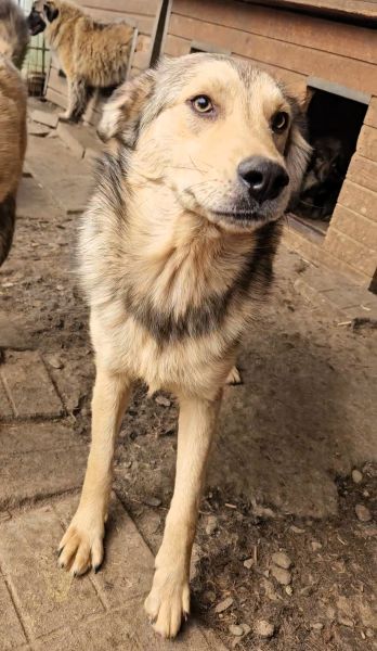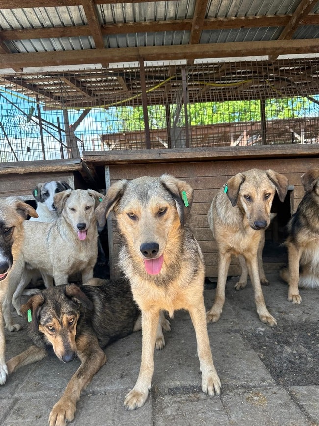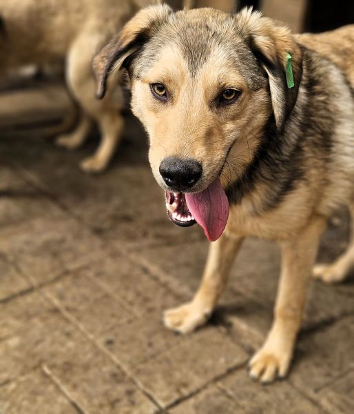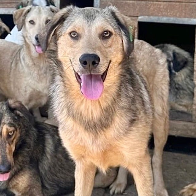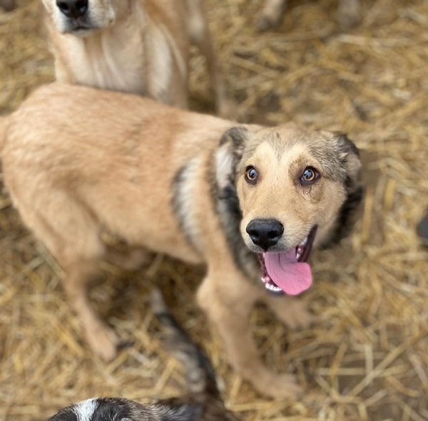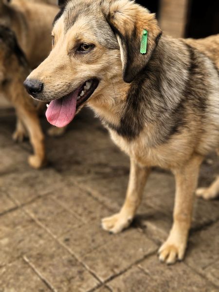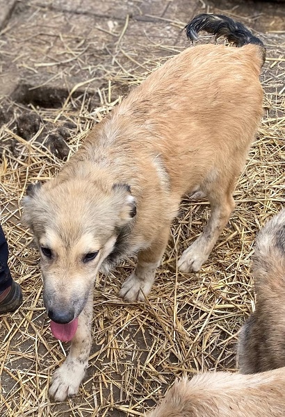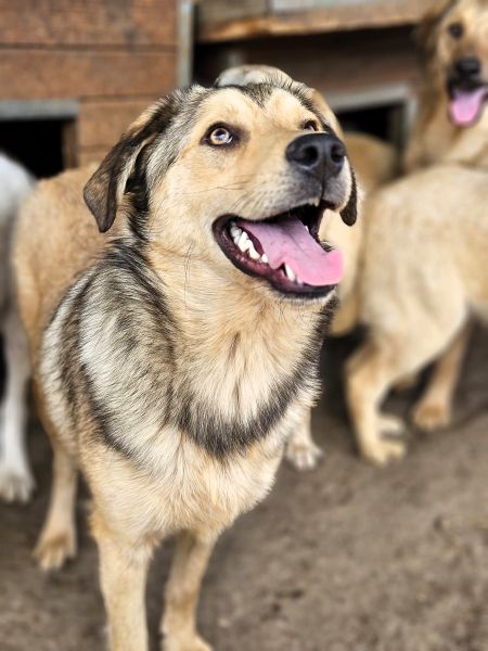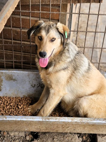PANCAKE sitzt zusammen mit 13 weiteren Junghunden in einem Kennel. Zusammen mit den anderen Junghunden wuselte und hüpfte er um uns rum. PANCAKE begrüßte uns neugierig. Er war einer der Ersten in seinem Kennel, der zu uns kam und nahm gerne unsere Leckerchen. Wir konnten ihn dabei an der Schnauze berühren. Für mehr Nähe fehlte ihm der Mut. Er ist seit Welpe an im Shelter und hat Streicheleinheiten nie kennengelernt. In einer anderen Umgebung würde er aber sicher schnell zutraulicher werden.