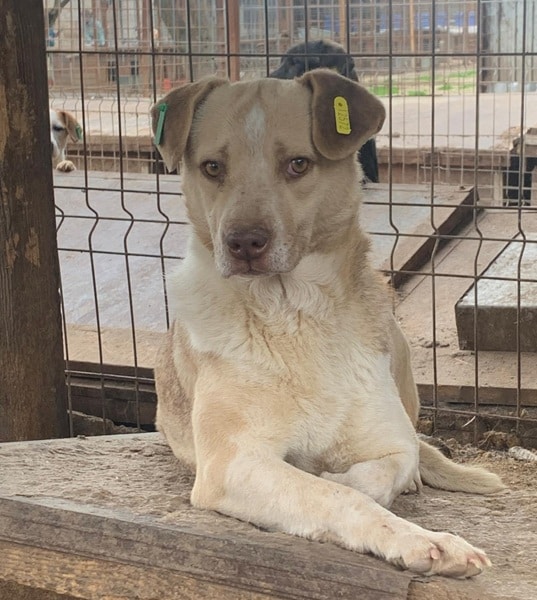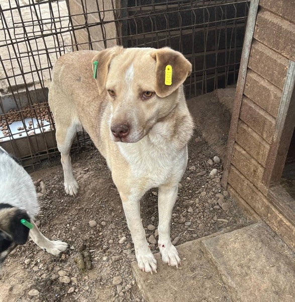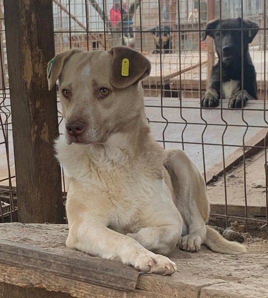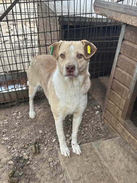 Die hübsche PANJA war sehr neugierig, uns jedoch noch skeptisch gegenüber. Nachdem sie zunächst Leckerlies vom Hüttendach nahm, kam sie sich diese nach kurzer Zeit auch aus der Hand abholen. Aufgrund des mangelnden Kontakts zum Menschen ist PANJA derzeit noch unsicher. Im neuen Zuhause würde sie Zeit zur Eingewöhnung benötigen. Grundsätzlich hat sie Interesse an der Interaktion mit dem Menschen, aber noch fehlt ihr für einen unbeschwerten Umgang der Mut. Während unseres Besuchs bemerkten wir, dass sie auf schnelle Bewegungen unsererseits schreckhaft reagierte und sie dies nervös machte. In ihrem Kennel zeigte die hübsche Hündin sich mit allen anderen Hunden verträglich. Auch im potentiellen Zuhause würde ihr mindestens ein souveräner Ersthund bestimmt bei der Eingewöhnung helfen.