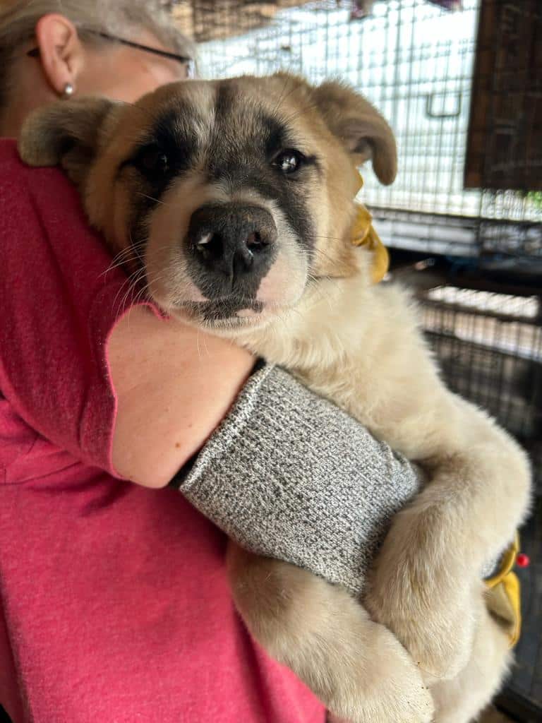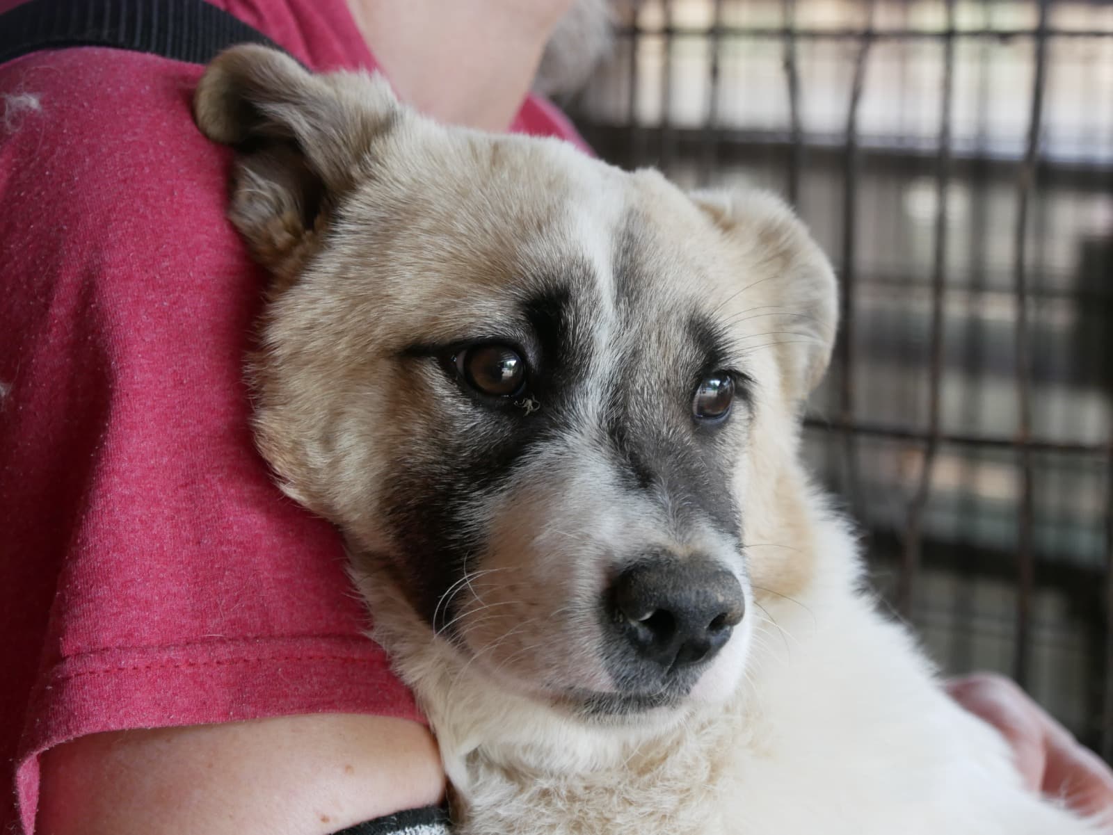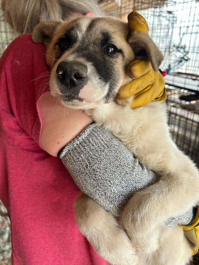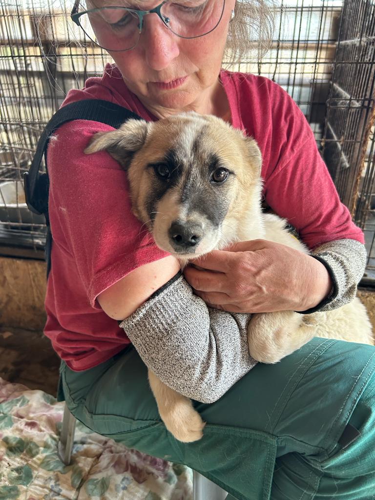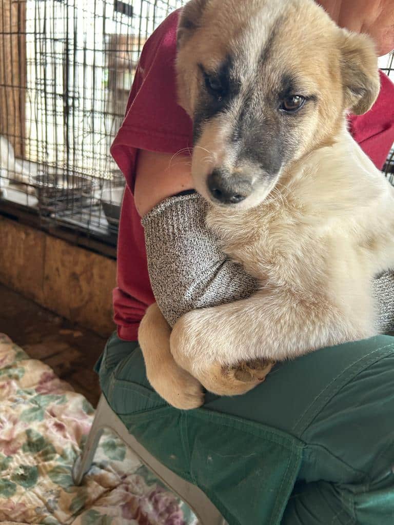 Das kleine Mädel lag vollkommen verschüchtert unter einem Stoffballen. Das Rausholen fand sie ganz gruselig, sie weinte herzzerreißend. Als sie merkte, dass nichts Schlimmes passierte, genoss sie den kurzen Moment auf dem Arm und später im Körbchen wedelte sogar ihr Schwänzchen ein wenig. Sie sollte wirklich ganz schnell rauskommen, um ihre Portion Liebe täglich bekommen zu können. Vom Wesen her ist sie vor Ort eher ruhig und zurückhaltend. Von einem netten Ersthund könnte sie gut profitieren.