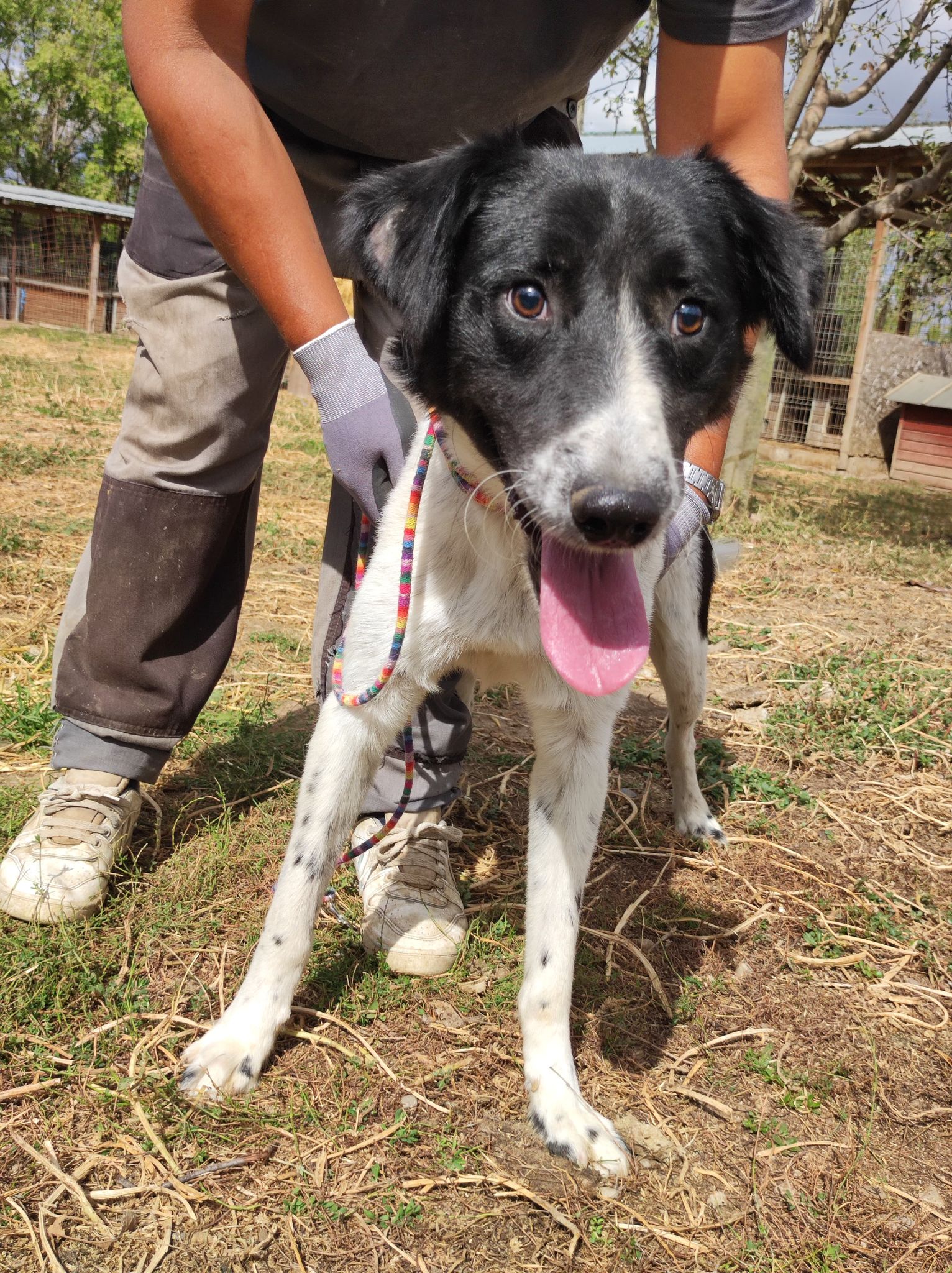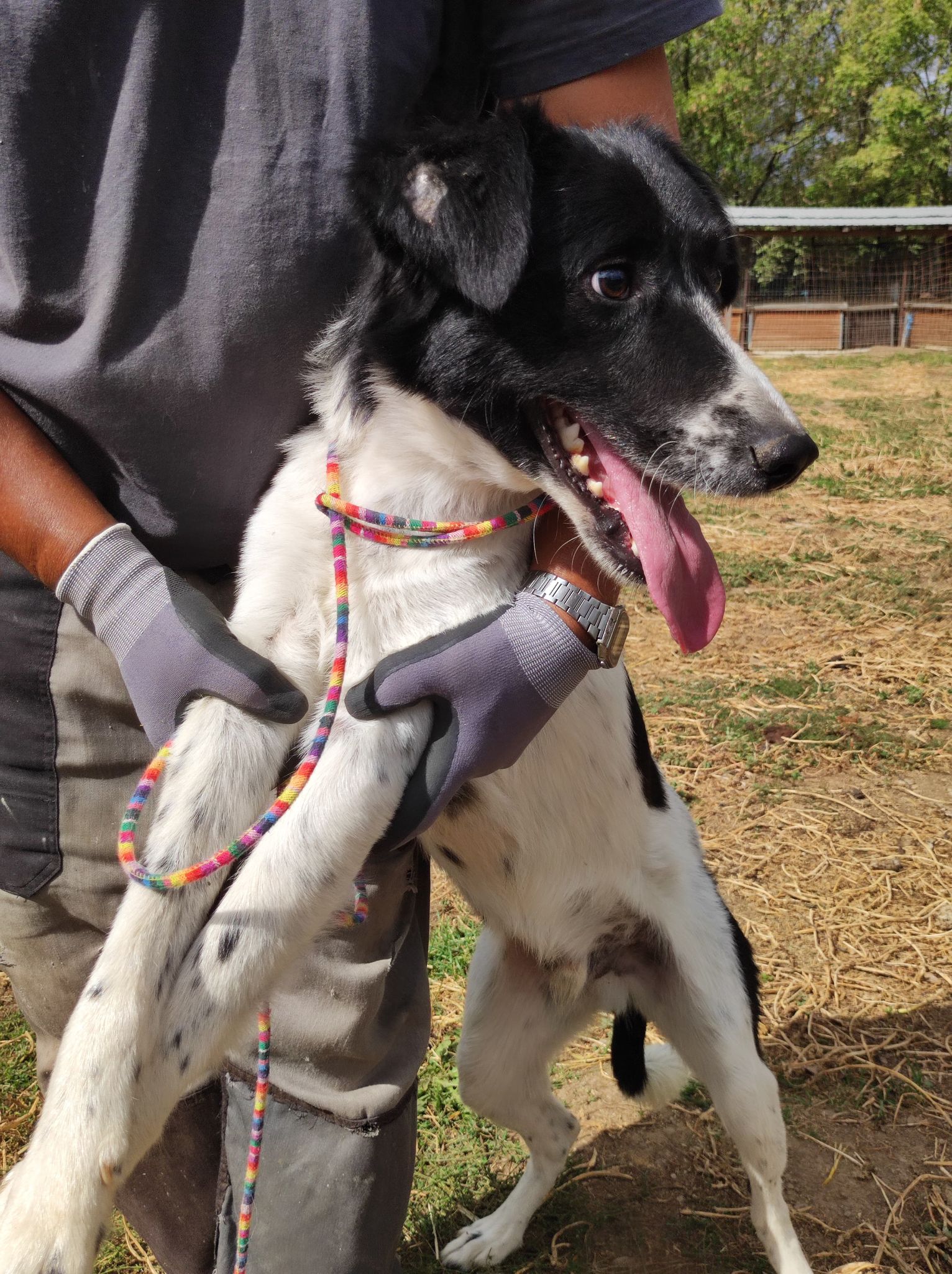 Er ist ein sehr freundlicher Rüde, kommt wohl mit allen Hunden klar, sofern sie mit seiner Behinderung klar kommen. Er liebt den Menschen und hat dabei eine sehr nette Art. Er ist blind, ja, aber kommt damit gut zurecht. Er ist nun weg gesperrt alleine in einem Kennel hinter dem Haus. Normale Kennel wären nicht sicher für ihn. Tag ein, Tag aus – einsam und allein und blind!