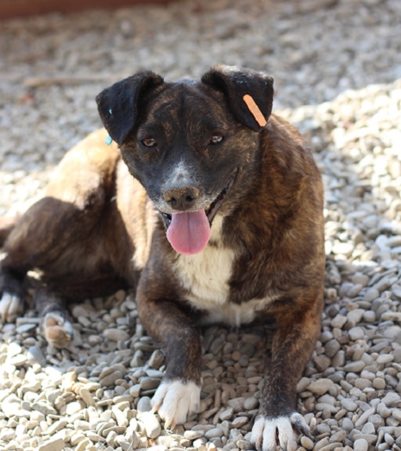 Der schüchterne PATCH ist ein ganz lieber, aber zurückhaltender Rüde, der wohl noch nie positive Erfahrungen mit uns Menschen gemacht hat. Als wir ihn besuchten konnte er sich nicht zwischen unseren Keksen und seiner Hütte entscheiden.