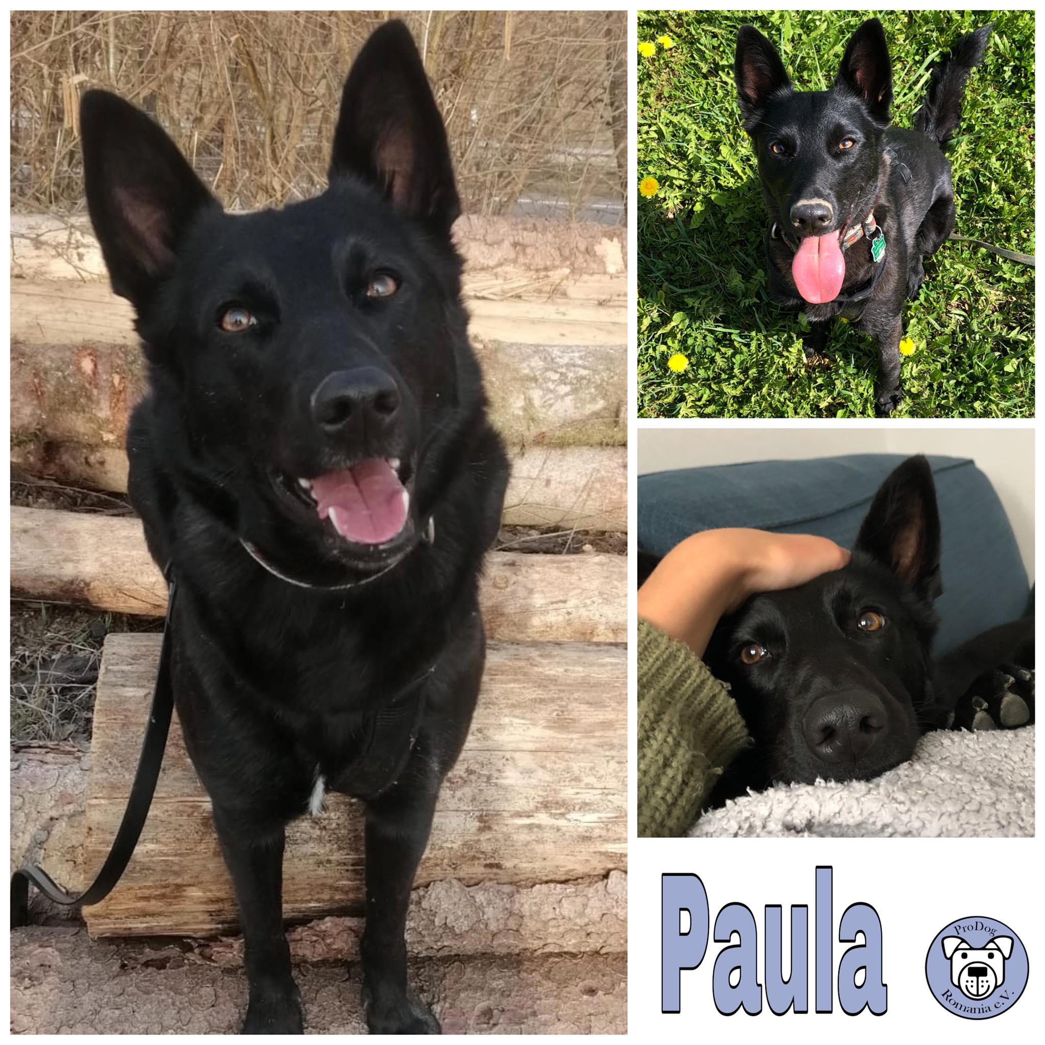 Sie ist eigentlich die perfekte Hündin, zuhause ruhig und sehr verschmust, kann super alleine bleiben und lernt für ihr Leben gerne und das auch gefühlt innerhalb von Sekunden. Paula kann alle gängigen Kommandos, weiß sich zu benehmen, sie kommuniziert sehr fein und subtil. Sie ist wirklich eine ganz Schlaue und Geschickte. Was aber in dem Fall auch ein großes Thema ist, denn sie merkte leider, ob ein Mensch Ihr Sicherheit vermitteln kann – oder nicht. Sie möchte gefallen und macht motiviert alles mit und liebt Action (Agility, blitzschnell rennen, Joggen, jeglicher Hundesport,…).