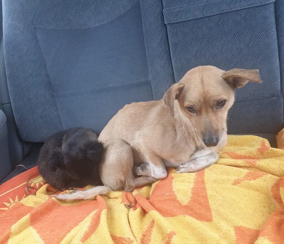 Hündin, kastriert geb. ca. 2014 ca. 30-35cm wurde mit ihrer Tochter CANDELA auf einem Feld gefunden