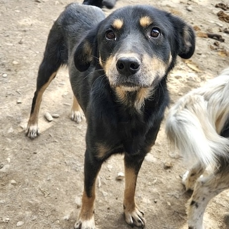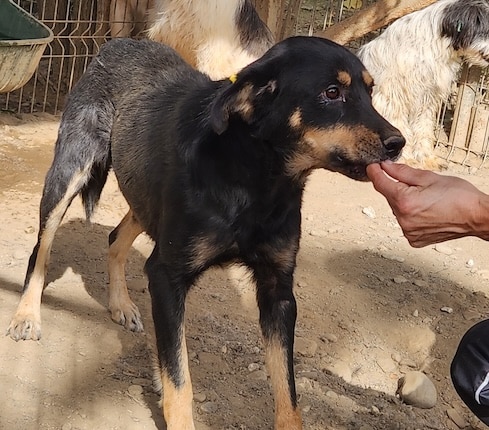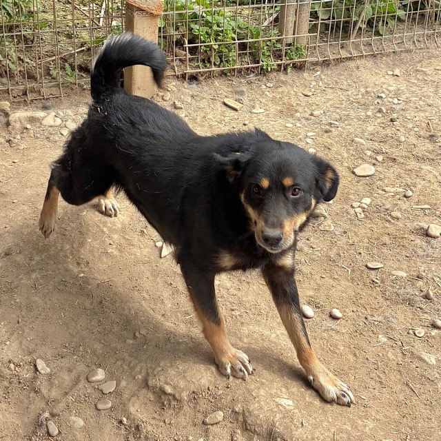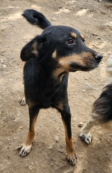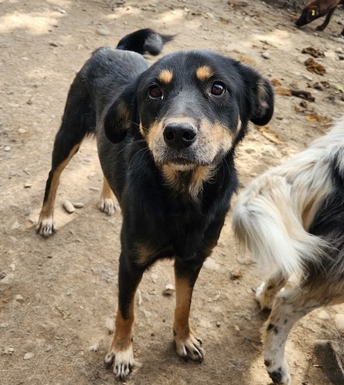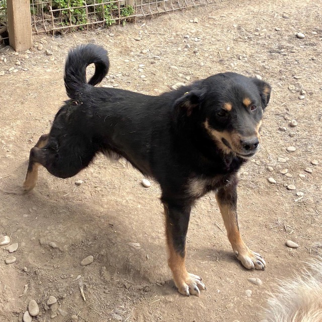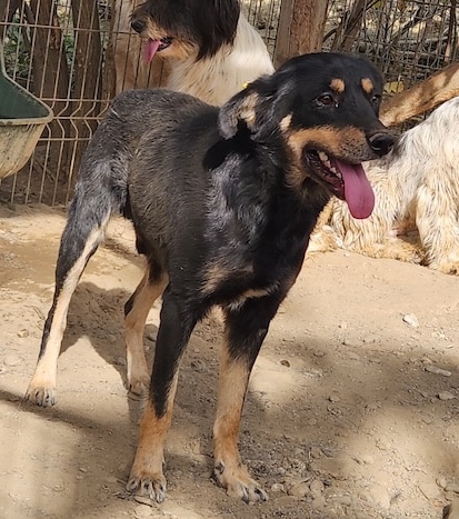 Der süße PAULE streckte sich erst einmal ausgiebig, denn wir betraten den Kennel zur Mittagszeit und so hatten sich einige der Hunde zum Dösen in die Hütten verzogen. Er zeigte sich bei diesem Besuch von der ersten Sekunde an freundlich und neugierig. Verspielt sprang PAULE zwischen uns umher und kam immer wieder ganz dicht heran, um an unseren Händen zu schnuppern. Dabei ließ er sich behutsam an der Schnute streicheln und wenn wir nur etwas mehr Zeit gehabt hätten, wären sicherlich auch wieder richtige Streicheleinheiten drin gewesen. Wir wünschen dem lieben PAULE, dass er endlich gesehen wird und bei verständigen Menschen auf der Sonnenseite ankommen darf. In seinem gemischten Rudel zeigt er sich sehr verträglich.