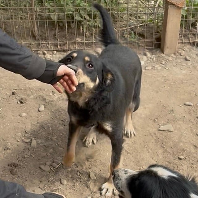 Der kleine Paule in braun schwarzer Jacke kam uns in verspielter Manier an der Kenneltür entgegen und freute sich über unseren Besuch. Sogleich nahm er die mitgebrachten Leckereien gerne aus unserer Hand. Paule kam immer wieder auf uns zu und suchte unsere Aufmerksamkeit auf seine fröhliche und lustige Art und Weise. Nach kurzer Zeit ließ er sich kleinere Streicheleinheiten gerne gefallen.