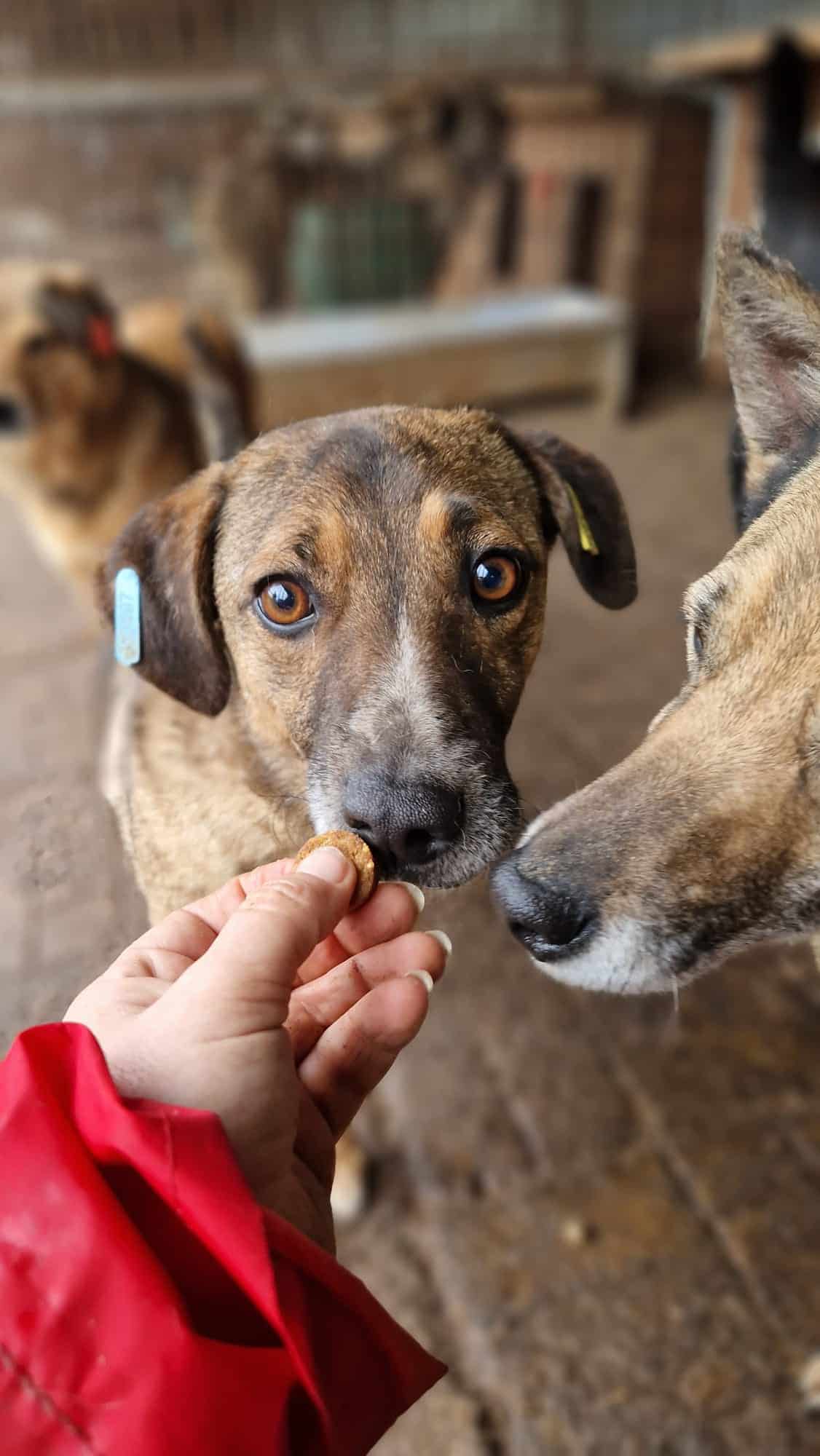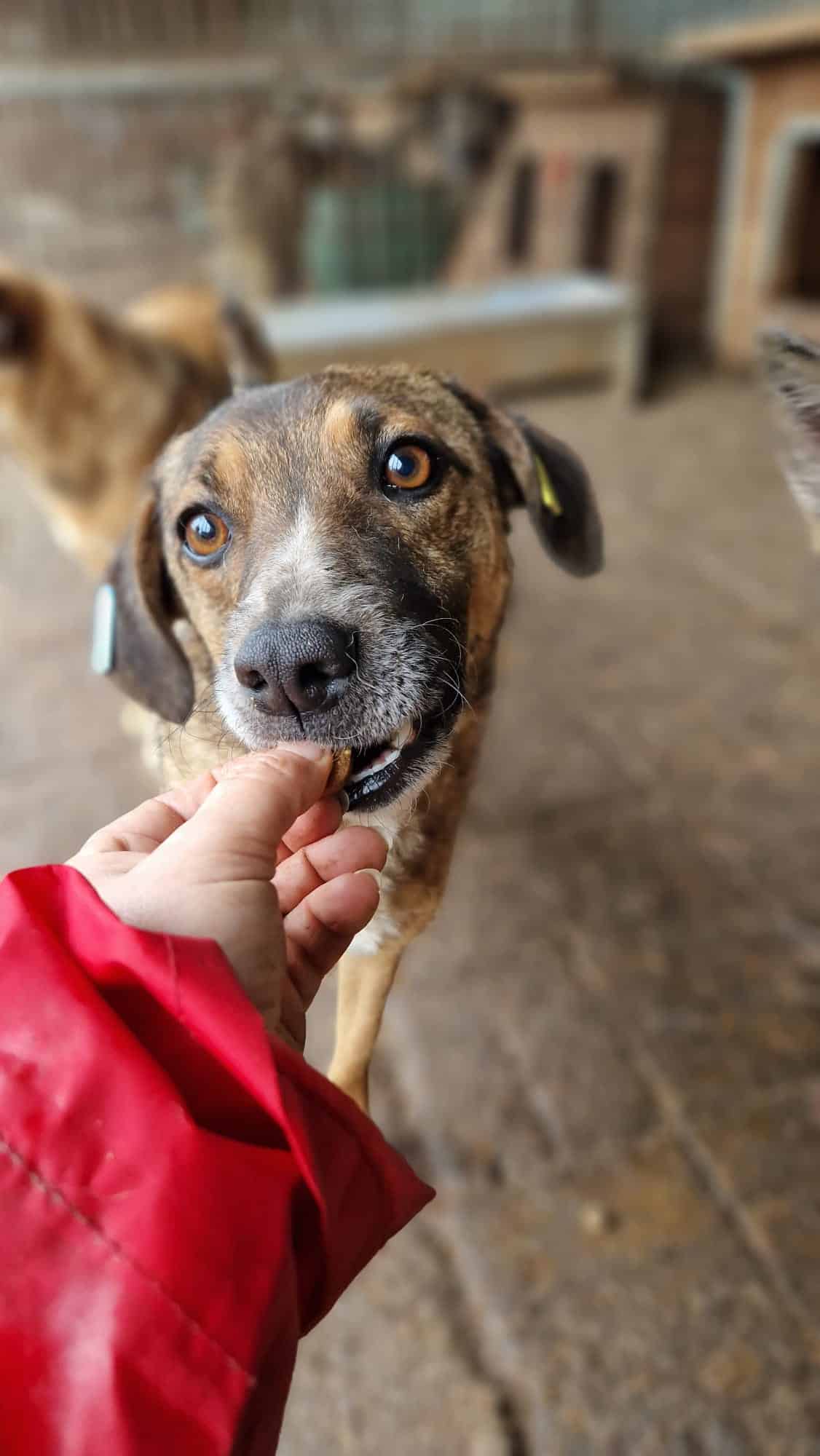 PAULI ist ein sehr süsser und lieber Rüde, der sofort Kontakt zu uns suchte. Gerne nahmer sanft unser Futter aus der Hand und ließ vorsichtige Berührungen dabei zu. Er ist aber weiterhin etwas unsicher und weicht dann bei zu viel Nähe zurück. Trotzdem denken wir, dass er mit mehr Kontakt zu Menschen gut auftauen wird.
