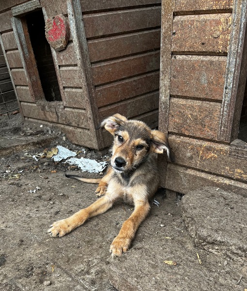 Rüde geb. ca. April 2023 Größe: wird wohl mind. mittelgroß (Stand 08/2023: ca. 35cm) zu dünn (08/2023)