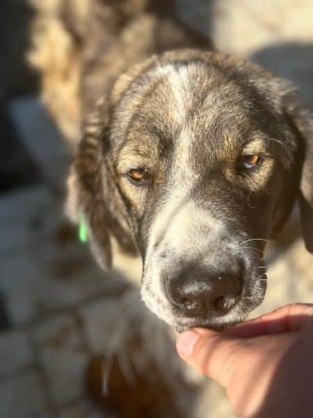 Sie war immer in unserer Nähe und wir konnten sie gut anfassen und streicheln. Wegen der Hautprobleme waren wir aber sehr vorsichtig und testeten nichts weiter aus. Die Situation im Kennel war auch nicht einfach, weil ein anderer Hund uns definitiv da nicht drin haben wollte.