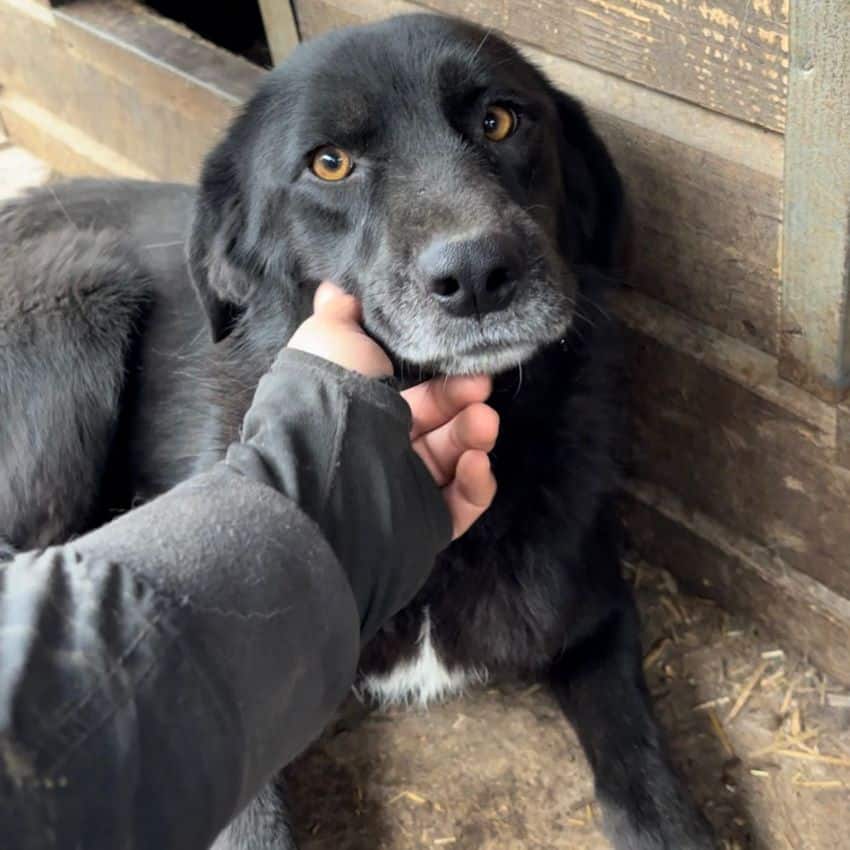 Die nette und freundliche PEACHES war zunächst etwas zurückhaltend. Als wir sie aus ihrer Hütte hoben, taute sie aber schnell auf. Sie war begeistert von unseren Leckerlis und hat sich dann problemlos anfassen lassen.