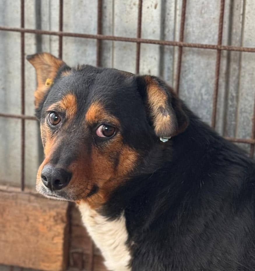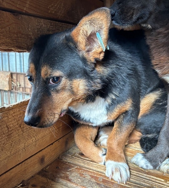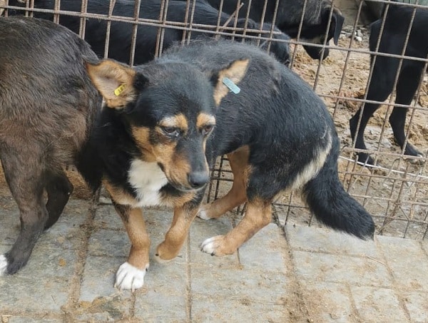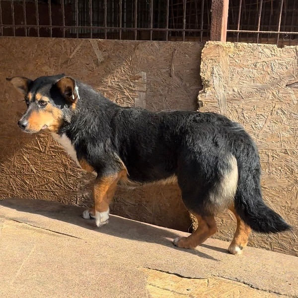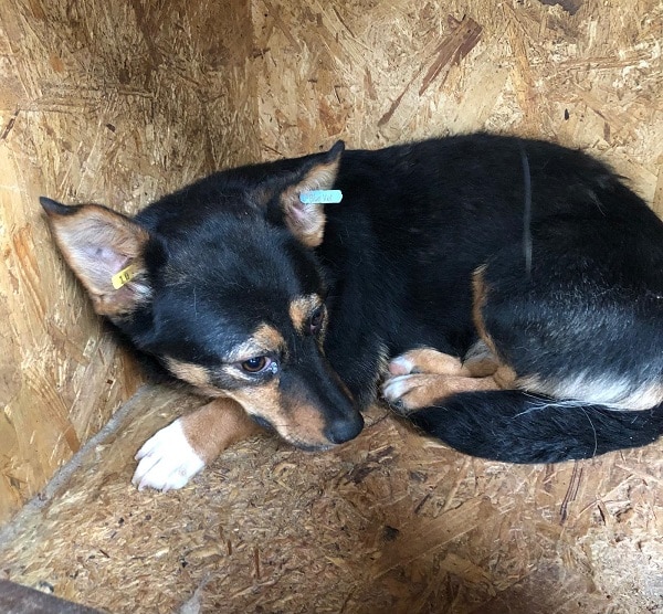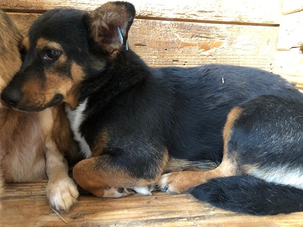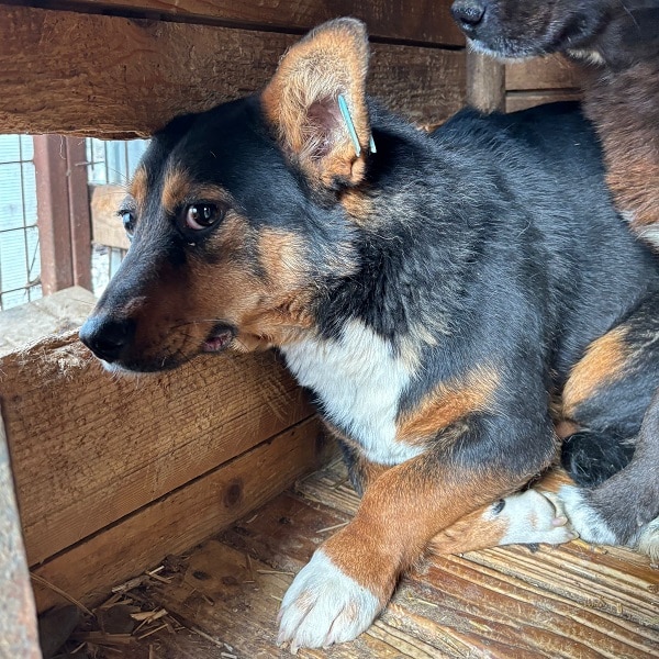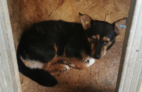 Das Mädchen mit den tollen Ohren und dem Körperbau eines englischen Königshundes lag in der Hütte und hätte am liebsten ihre Ruhe gehabt. Der Trubel um sie herum war ihr einfach zuviel. Auf unsere Berührungsversuche reagierte sie leider wenig begeistert und machte durchaus auch einen Abschnapper, als wir sie bedrängten. Sie scheint noch Angst vor dem Menschen zu haben und braucht erfahrene Menschen, die ihr zeigen, dass Menschen durchaus toll sein können. Als wir um sie herum fuchtelten, um uns mit einem anderen Hund in der Hütte zu beschäftigen, blieb sie stets defensiv.