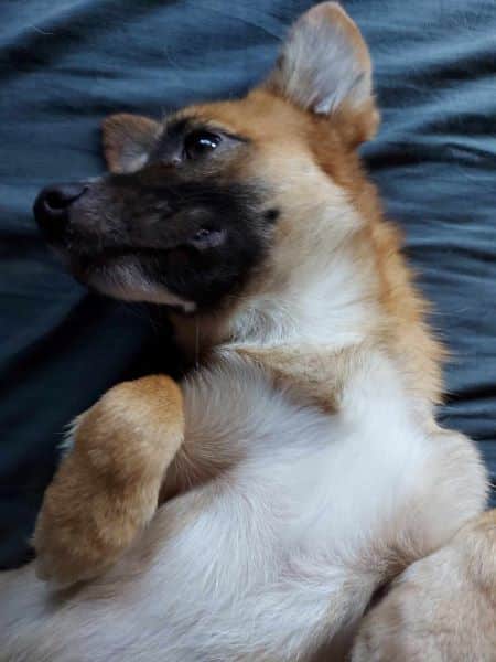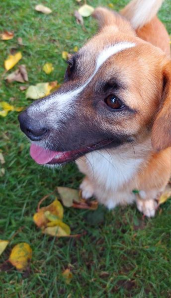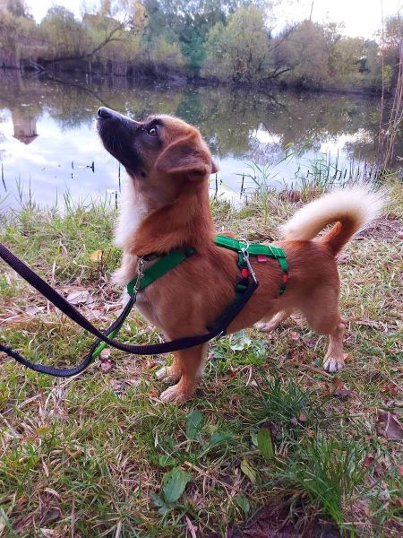 Er ist sehr verschmust, aber nie aufdringlich sondern nur putzig. Sitz kann er schon wie ein Profi und zeigt sich generell sehr lernwillig. An der Leine geht er auch schon recht gut und ist sehr aufmerksam – es könnte ja zur Belohnung ein Leckerchen dabei rausspringen.
