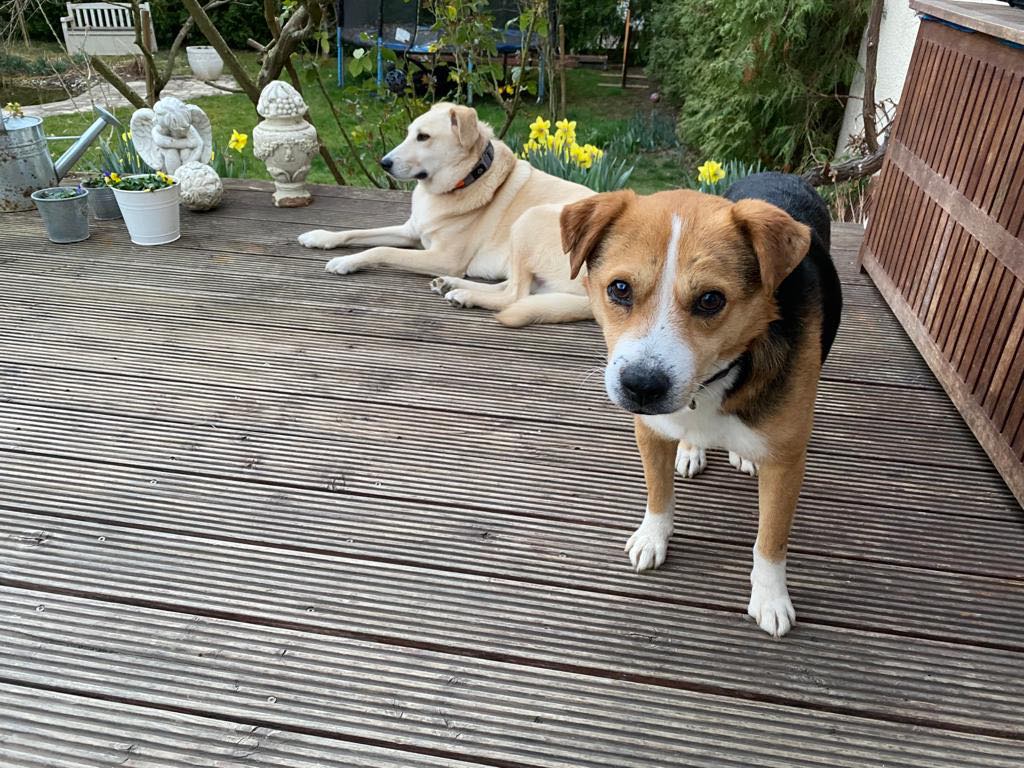 Er hat sich sehr gut eingelebt und verträgt sich gut mit unserem Ersthund und unseren Kindern. Er ist ausgesprochen lieb und chamant. Er geht freundlich auf Besucher/Spaziergänger zu und ist gut verträglich mit anderen Hunden.