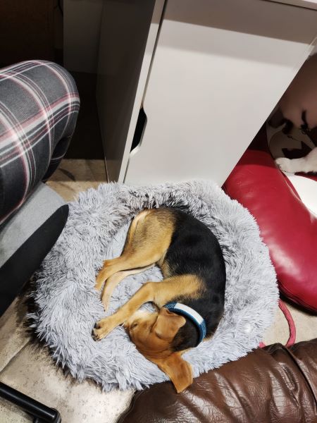 Wie ein kleiner Wirbelwind ist sie hier auf PS gelandet und hat sich doch gleich in alle Herzen gefreut. Sie mag laufen, hüpfen, sich drehen, spielen – ihre Freude ist ansteckend und tut so gut in dieser Zeit. Nach der Tobephase kann sie aber auch gut runterkommen und sich einfach gemütlich ablegen und die Ruhe und Stille genießen. Dann gerne auch gemeinsam mit ihren PS-Schwester und dem PS-Frauchen auf der Kuschelkrone. Bürozeiten werden 1A eingehalten.