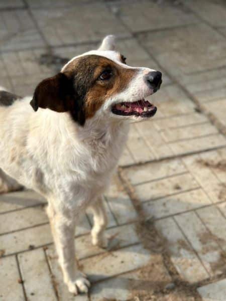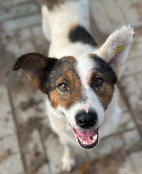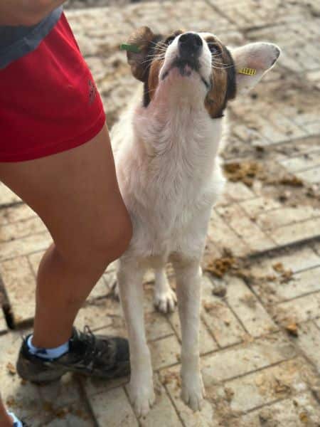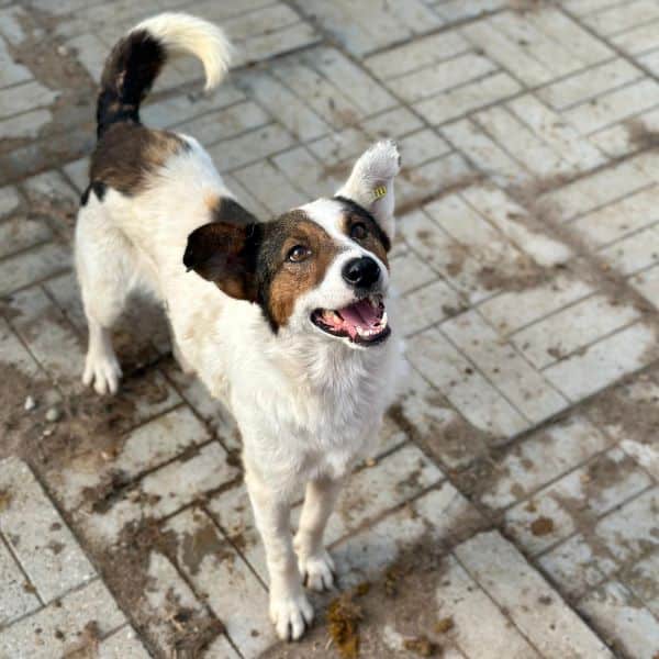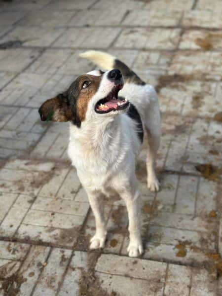 Junger, netter Rüde, der sehr wahrscheinlich auch für sportliche Aktivitäten zu haben ist, begrüßte uns zusammen mit seinen Kumpels herzlich in seinem Kennel. Er freute sich über die Aufmerksamkeit und zeigte sich die gesamte Zeit gegenüber uns und seinen Hundekumpels freundlich. Er ist aufmerksam, beobachtet interessiert uns Menschen, daher wird er wahrscheinlich gerne etwas lernen und dabei auch pfiffig sein. Durch seine nette Größe wird er in viele Familien passen, wobei es dabei nicht so wichtig ist, ob als Zweithund oder Einzelhund. Er wird sich wohl fühlen.
