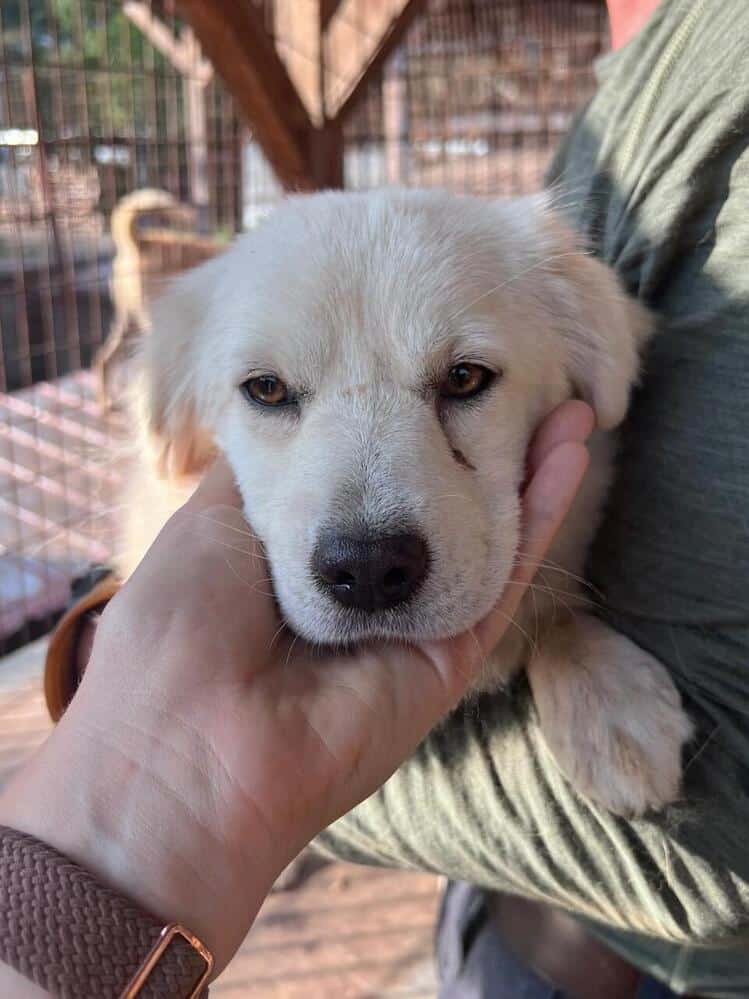Die kleine, sehr flauschige PERLE ist sehr nett, etwas unsicher, weil sie die Nähe und den Kontakt zum Menschen nicht gewohnt ist. Lässt sich aber gut anfassen und auf den Arm nehmen.
