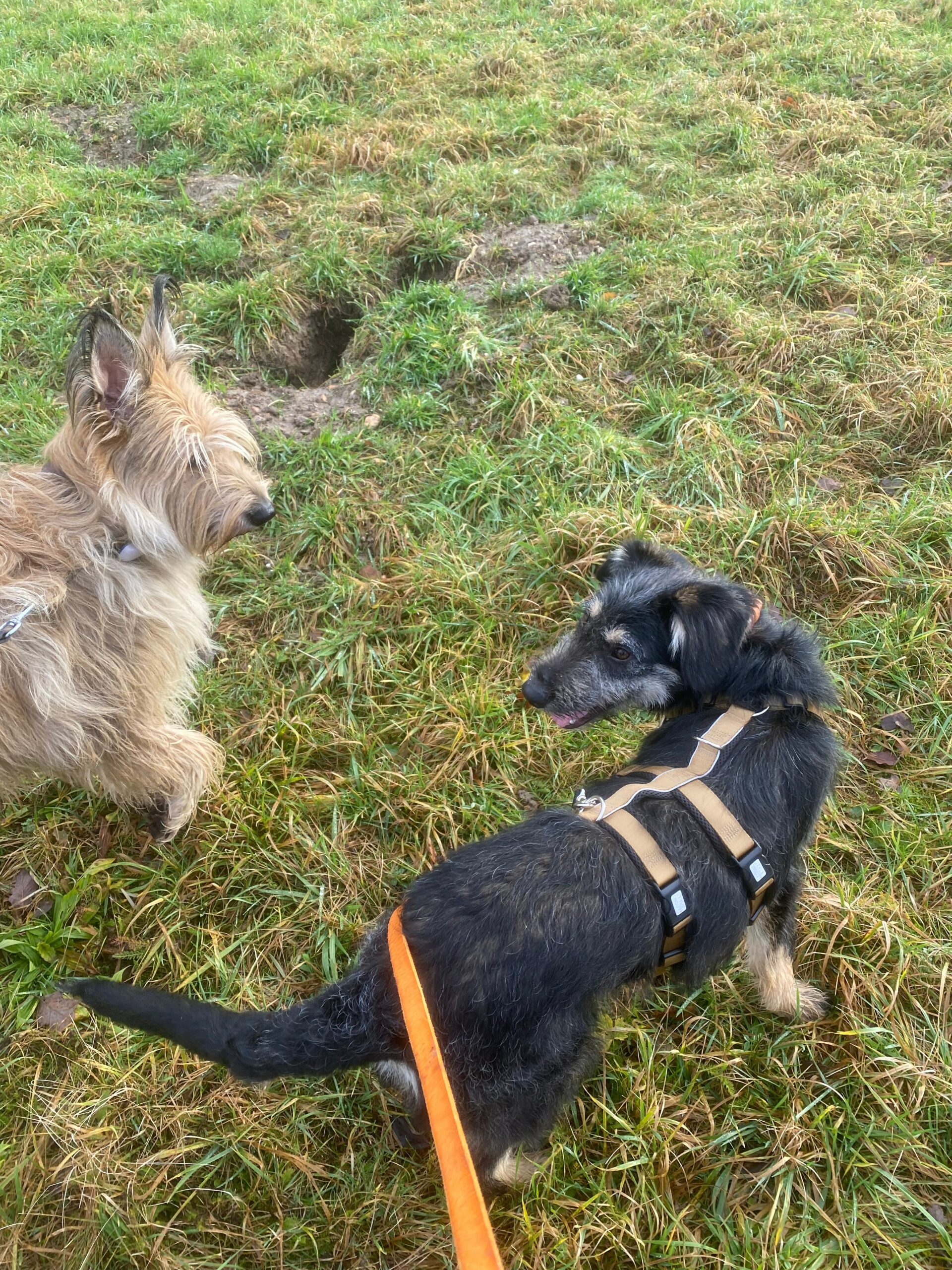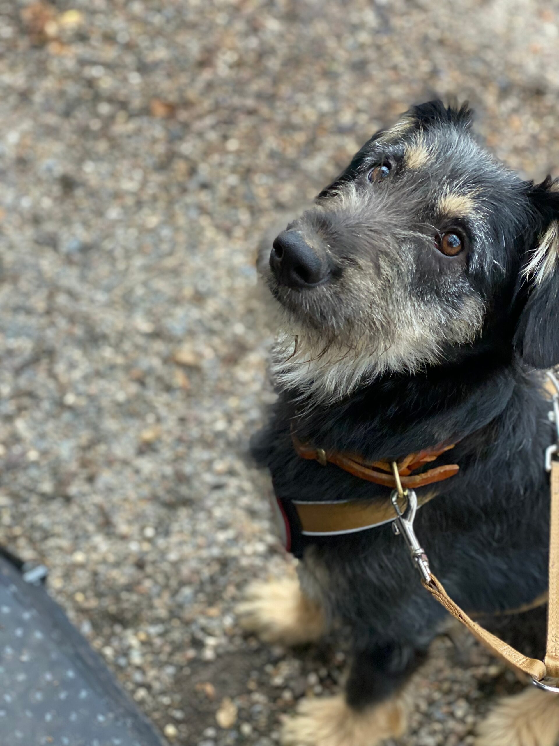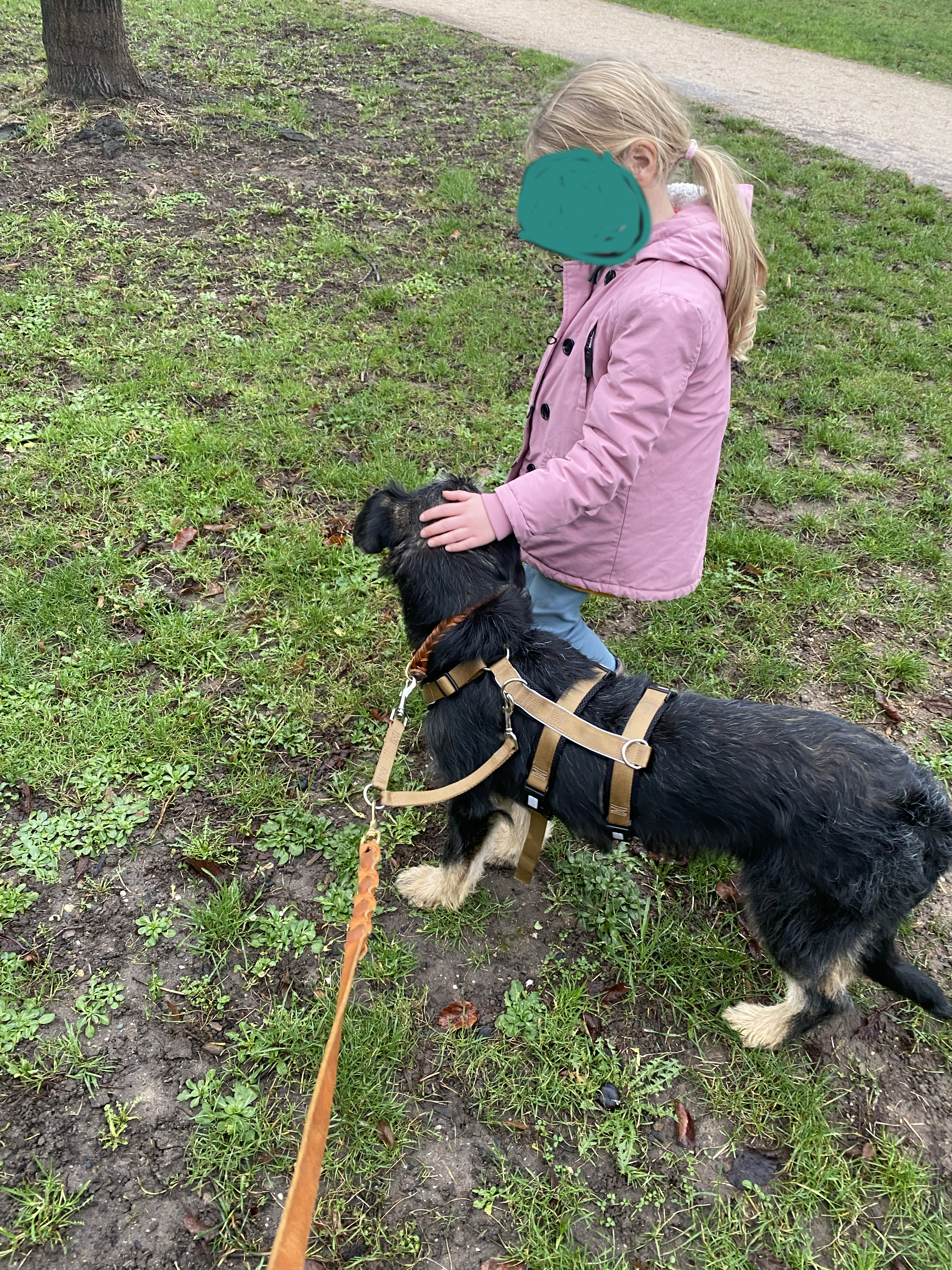 Manchmal sind ihm Menschengruppen etwas unheimlich, oder auch Menschen, die auf ihn zukommen. Das muss er lernen. Wir bleiben dann stehen und lassen uns Zeit zum Schauen, dass es doch nicht so schlimm ist und dann geht es weiter.