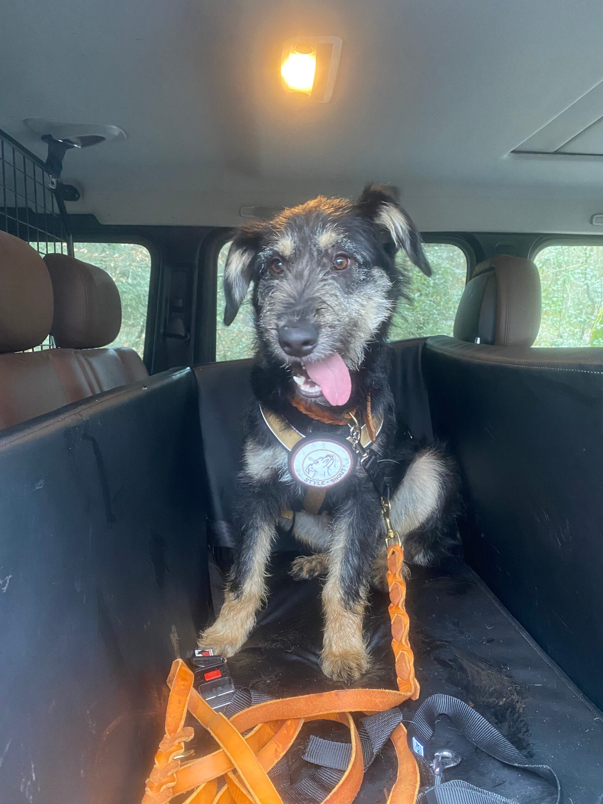 Autofahren findet er super und an der Leine laufen kann er auch schon.