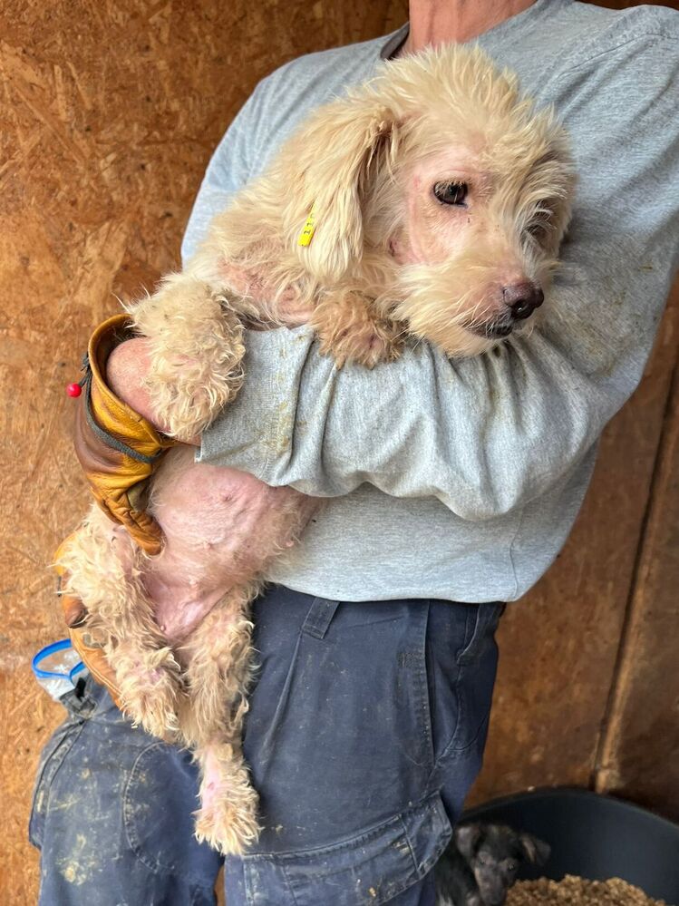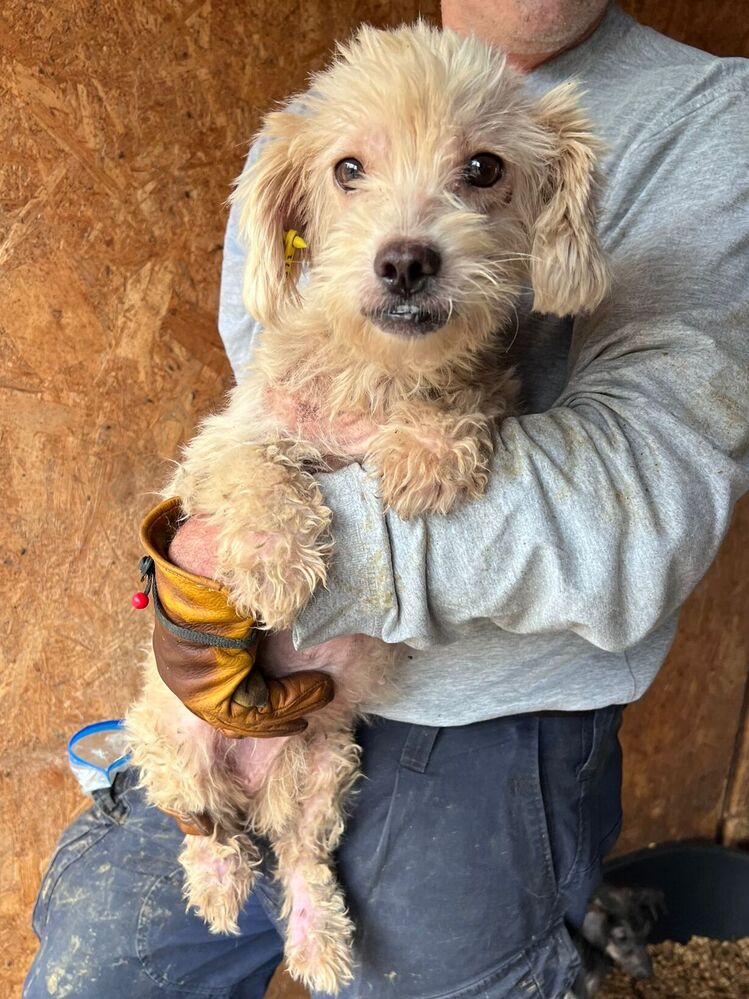 Diese kleine, zarte Hündin wirkt sehr überfordert und verzweifelt mit ihrer Situation im Shelter. Auch sie ist in einem sehr vollen Kennel voller Hunde untergebracht, die Lautstärke und der Trubel machen ihr zu schaffen. Die Hautprobleme zeigen, wie sehr ihr das Shelterleben auf die Seele schlägt.