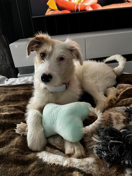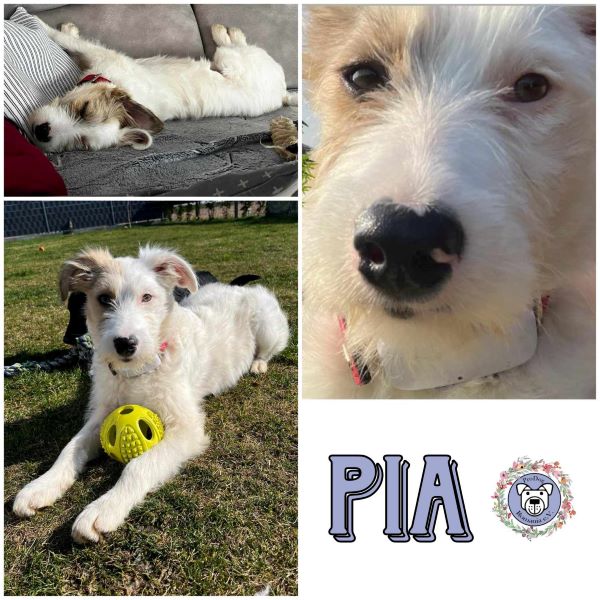 Pia lebt auf ihrer Pflegestelle mit einer Hündin und einem Rüden zusammen. Nach einer kurzen Auftauphase tobt sie inzwischen schon mit ihrer kleinen Spielpartnerin rum und dem großen Rüden schenkt sie auch täglich mehr Beachtung und Aufmerksamkeit. Das Leinentraining ist im vollen Gange und auch da lernt sie schnell. Die Stubenreinheit klappt erstaunlich gut.