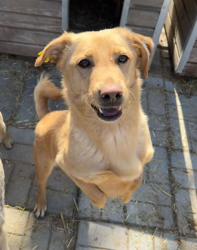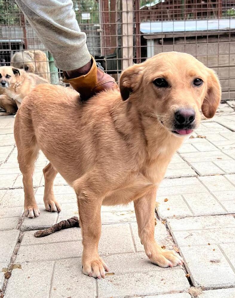 Den goldfarbenen PICUS mit dem blauen Fleck auf der Zunge durften wir bei unserem Besuch im Tierheim in Bucov/Rumänien kennenlernen. Er gehörte zu den Hunden, die keine Aufwärmphase brauchen und kam uns gleich neugierig und freundlich begrüßen. Das ist keine Selbstverständlichkeit, zumal er bereits seit Anfang 2023 im Tierheim lebt und die 5.000 Hunde dort ohne nennenswerten Menschenkontakt auskommen müssen. Seine etwas krummen Beine machen ihn nur noch süßer. PICUS findet Streicheleinheiten super und lässt sich auch problemlos hochheben. Zwischen ihm und seinen Zwingerkollegen gibt es keine Konflikte. Wir können ihn uns in so ziemlich jedem zuhause vorstellen. Wessen Herz kann er erobern?