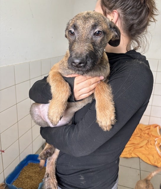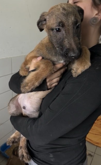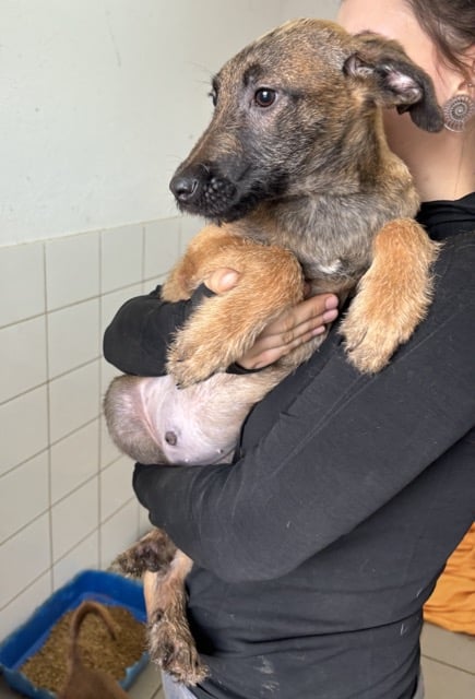 Der zuckersüße PIEFKE zeigte sich bei unserem Besuch sehr offen und freundlich. Rührend verteilte er Küsschen und ließ sich problemlos auf dem Arm halten. Er genoss sichtlich den kurzen Moment der Geborgenheit. Welpentypisch ist PIEFKE sehr neugierig und verspielt und teilt sich verträglich mit seinen Geschwistern einen Raum. Doch der Shelter ist absolut der falsche Ort für solch aufgeweckte und lebensfrohe Hundekinder, die nur zu gern mit ihren Menschen die Welt erkunden würden. Wir hoffen sehr, dass PIEFKE und seine Geschwister schon bald diese Chance erhalten.