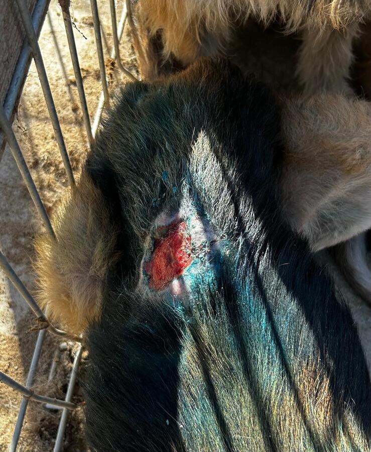 PIERCE wurde vermutlich durch den Zaun gebissen, er hat eine Wunde am Rücken, welche bereits versorgt wurde.