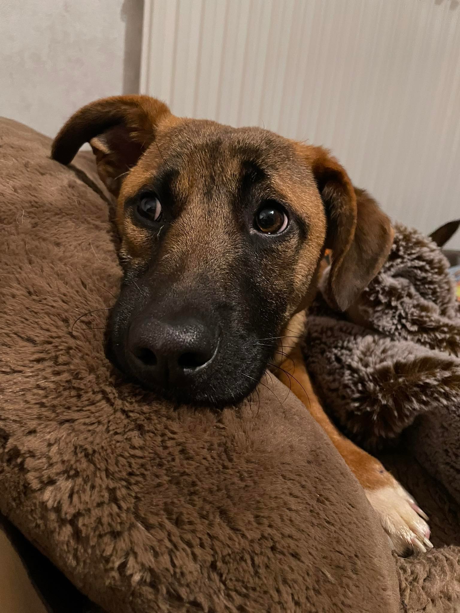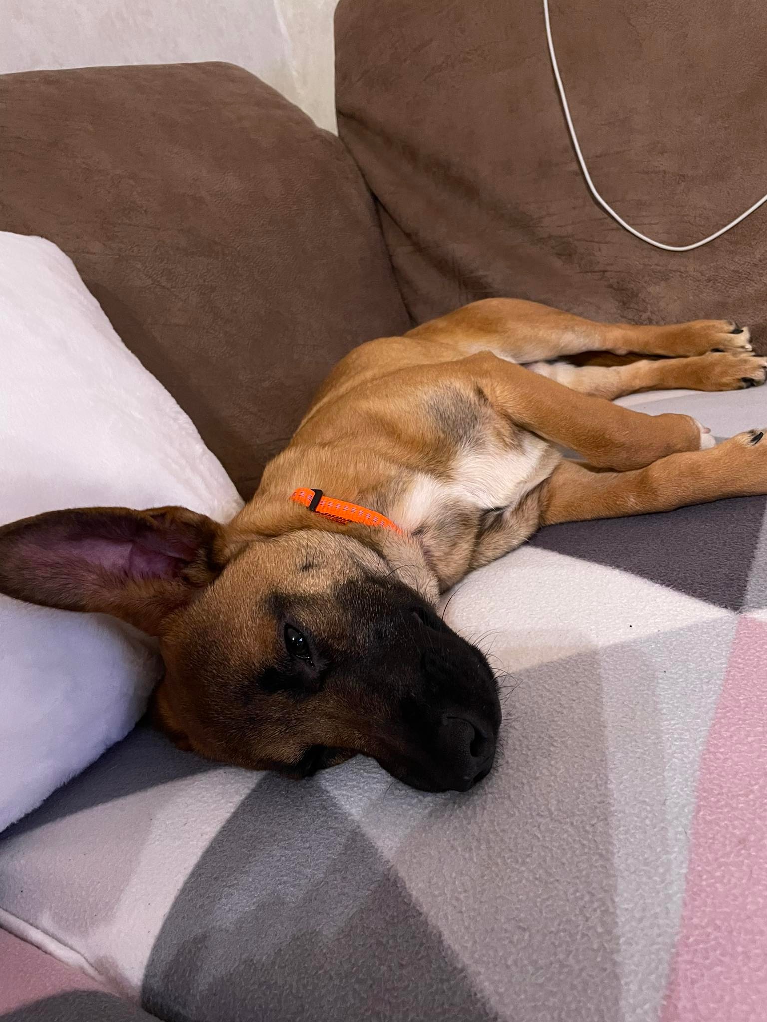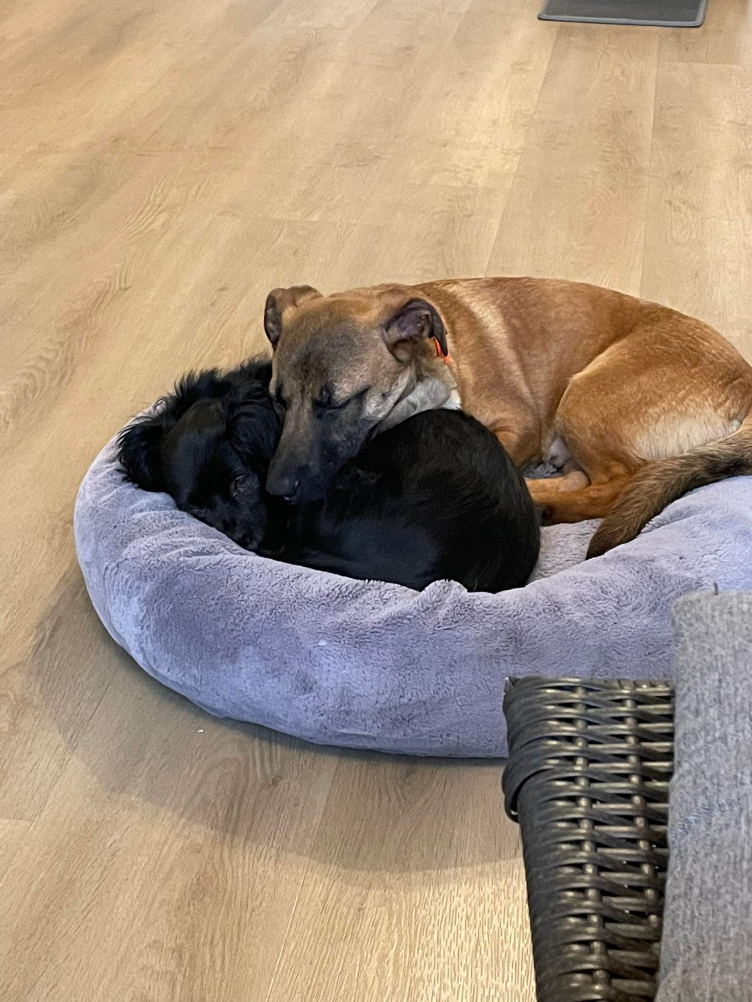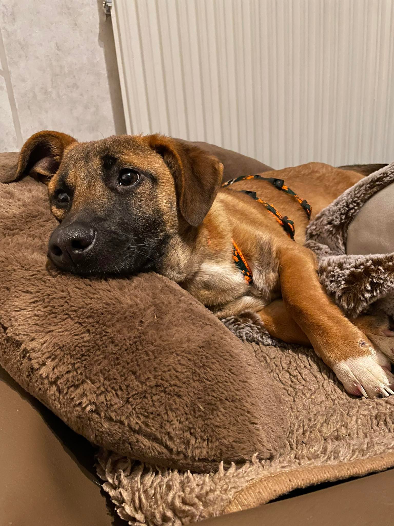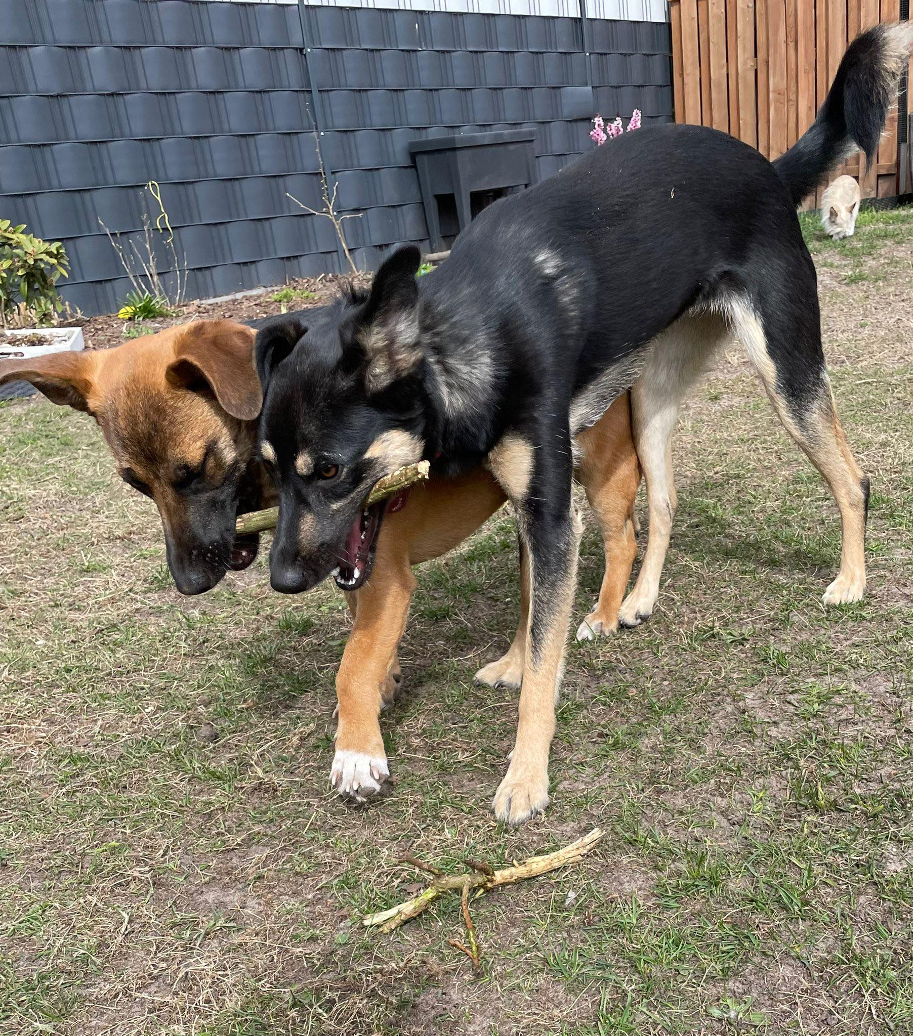 Er bleibt hier im Rudel bis zu 6 Stunden gut allein, das ist überhaupt kein Problem für ihn. Auch ist er komplett stubenrein.